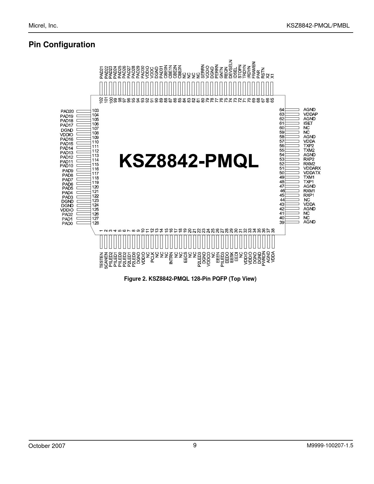 Micrel, Inc. KSZ8842-PMQL/PMBL Pin Configuration Figure 2. KSZ8842-PMQL 128-Pin PQFP (Top View) October 2007 9 M9999-100207-1.5