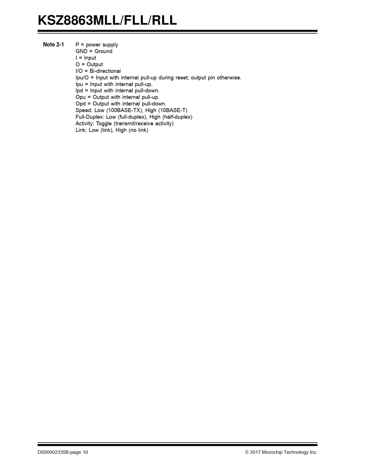 | Páginas / Página | 92 / 10 — KSZ8863MLL/FLL/RLL. Note 2-1 |
