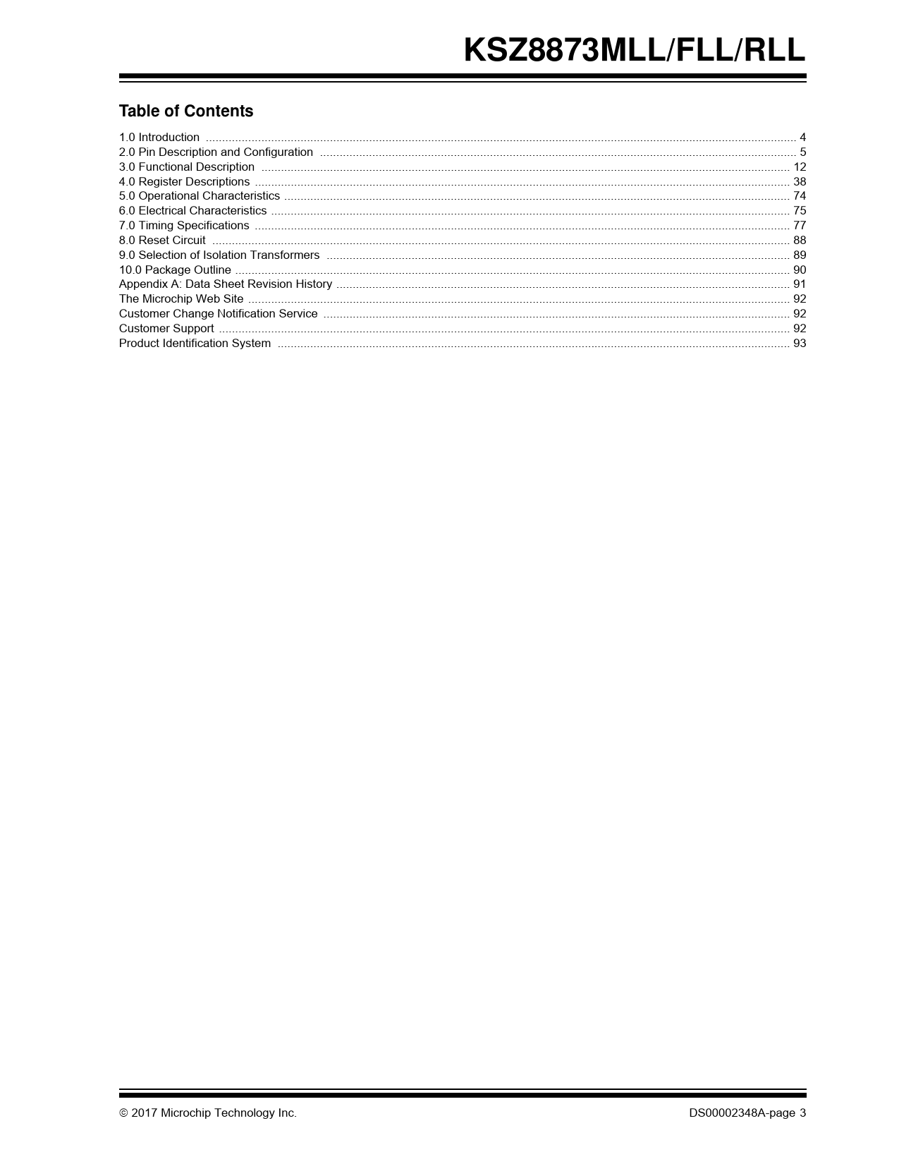 KSZ8873MLL/FLL/RLL Table of Contents