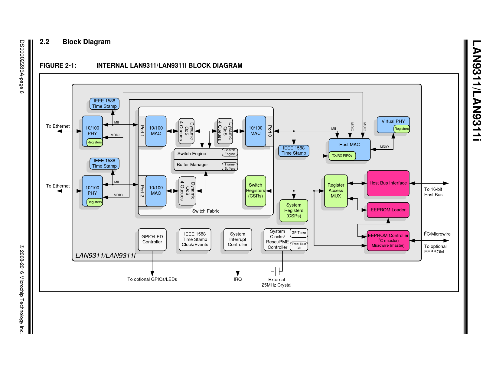 | Páginas / Página | 311 / 8 — LAN931. 2.2. Block Diagram. FIGURE 2-1:. INTERNAL LAN9311/LAN9311I BLOCK … |