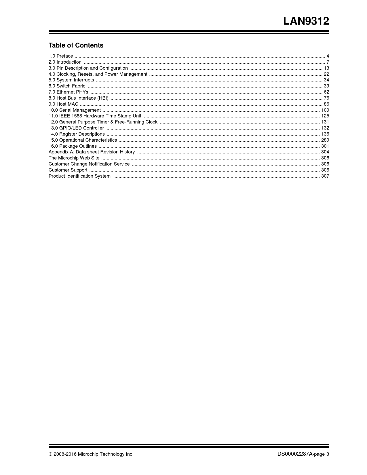 | Páginas / Página | 309 / 3 — LAN9312. Table of Contents |