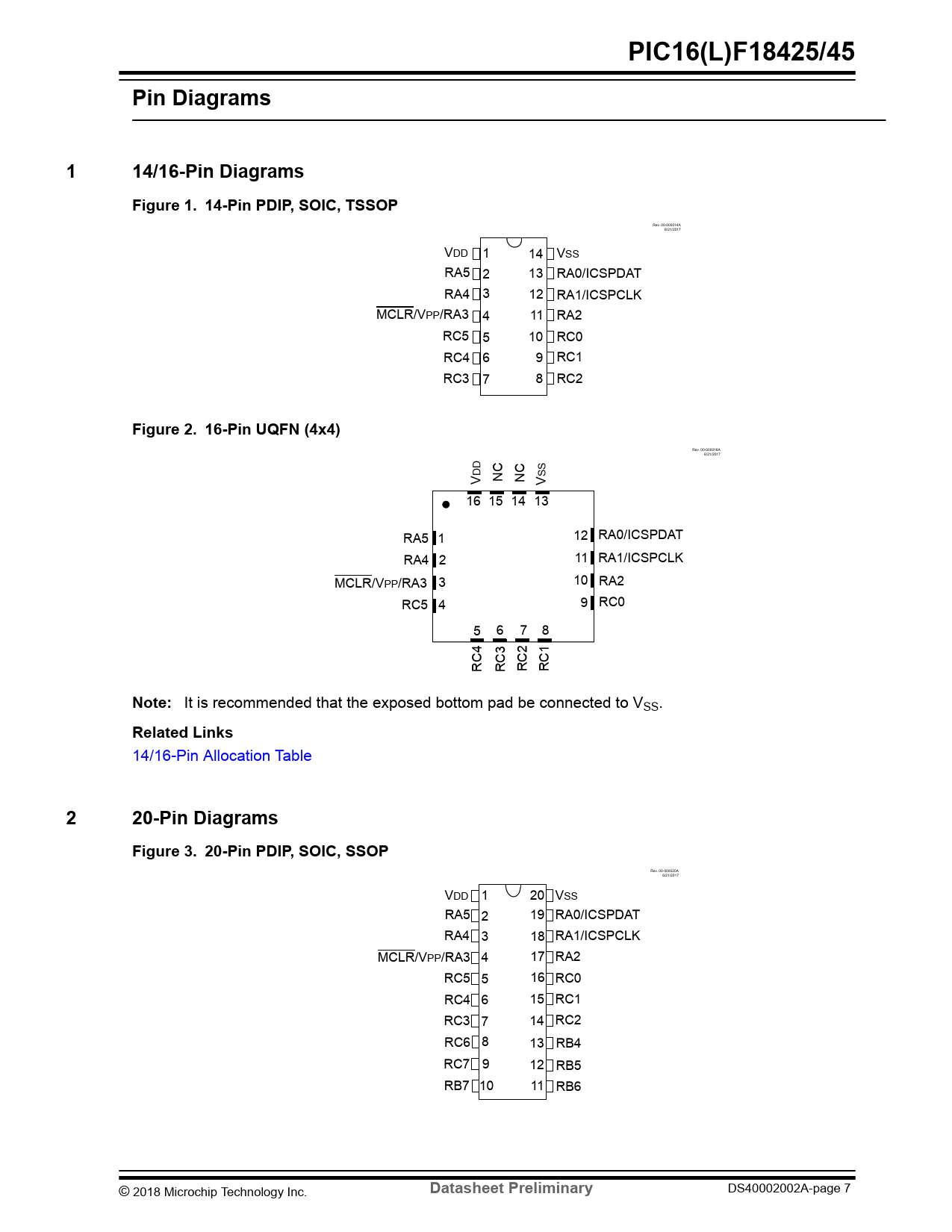 PIC16(L)F18425/45. Pin Diagrams. 14/16-Pin Diagrams. Figure 1. 14-Pin PDIP, SOIC, TSSOP. Figure 2. 16-Pin UQFN (4x4). Note: