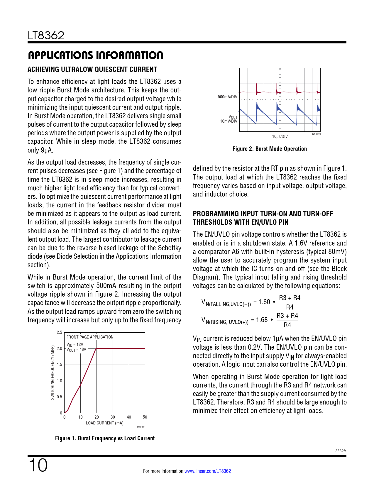 APPLICATIONS INFORMATION. ACHIEVING ULTRALOW QUIESCENT CURRENT. Figure 2. Burst Mode Operation