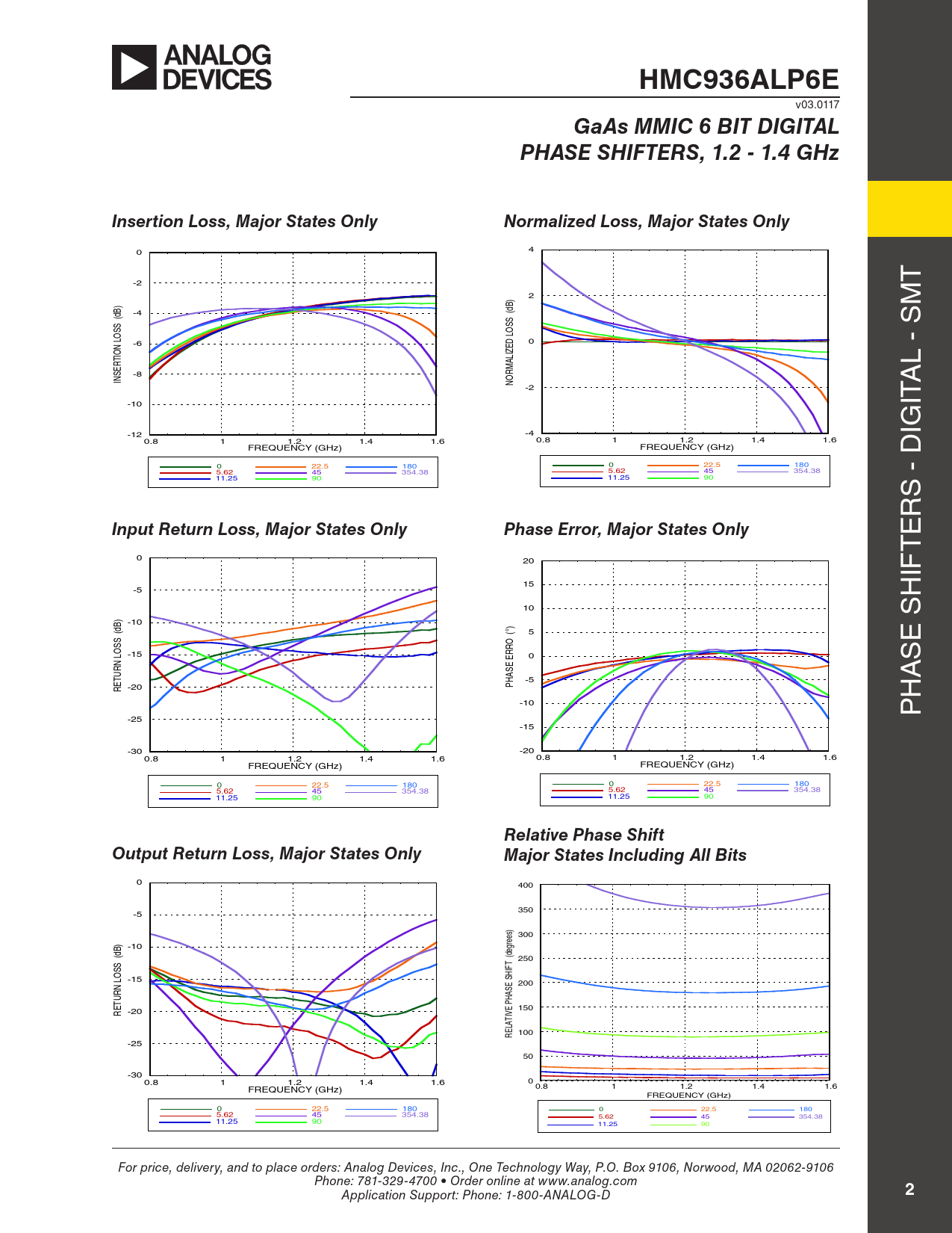 HMC936ALP6E. GaAs MMIC 6 BIT DIGITAL. PHASE SHIFTERS, 1.2 - 1.4 GHz. Insertion Loss, Major States Only