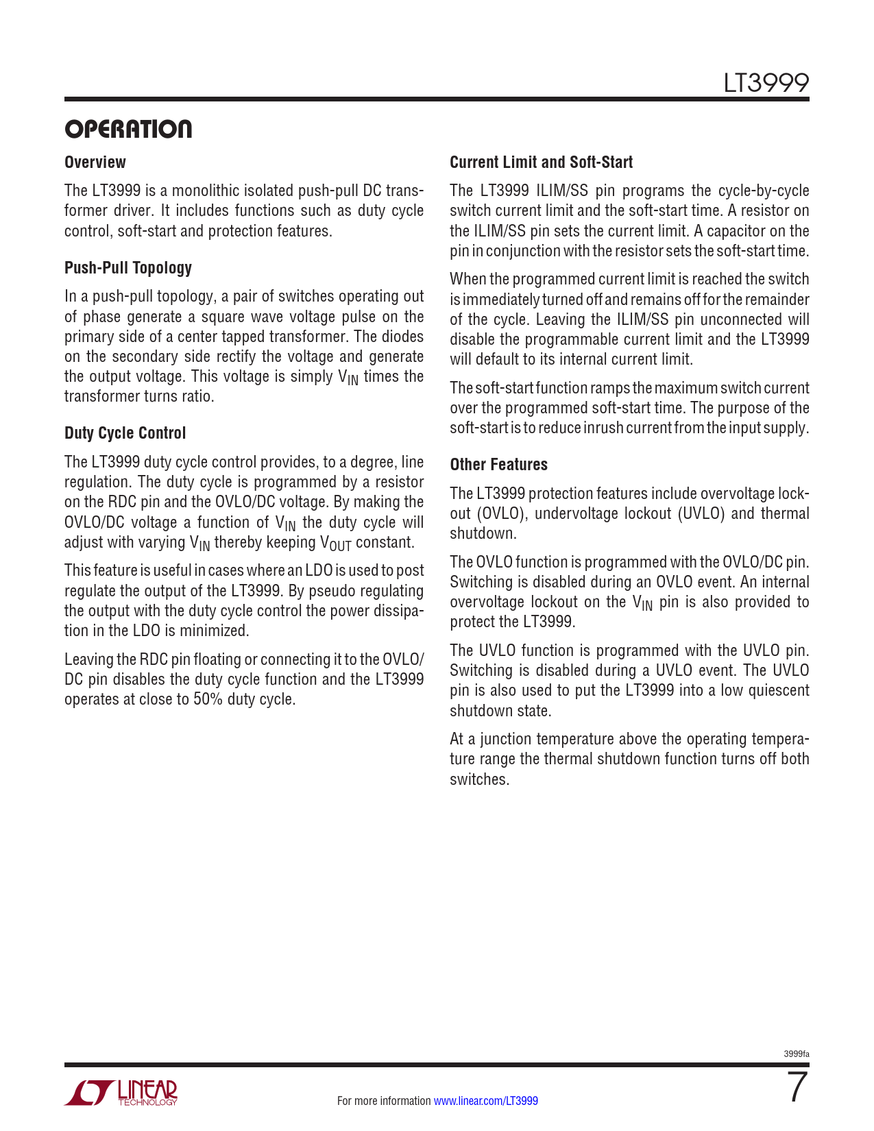 OPERATION Overview. Current Limit and Soft-Start. Push-Pull Topology. Duty Cycle Control. Other Features
