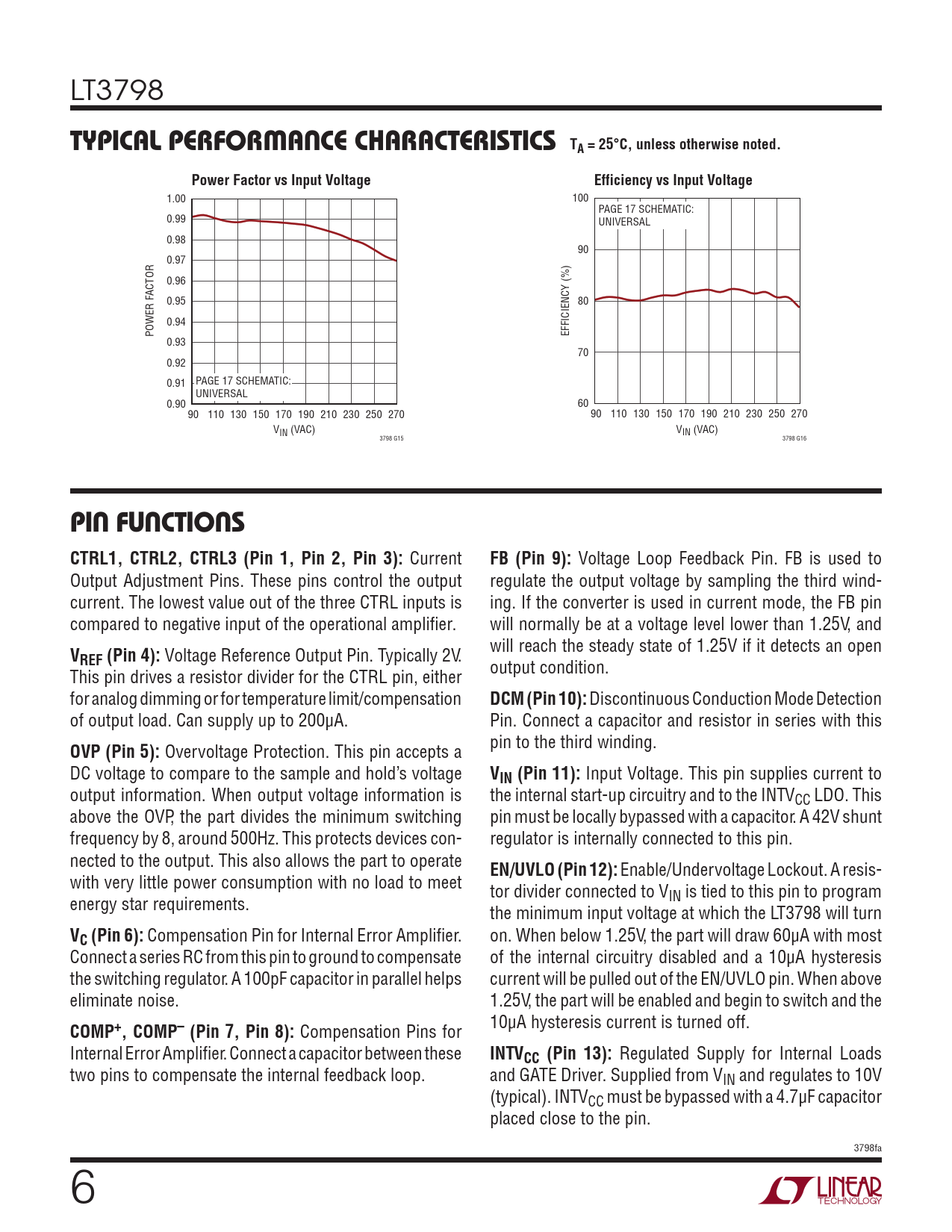 1.00 100 PAGE 17 SCHEMATIC: 0.99 UNIVERSAL 0.98 90 0.97 0.96 0.95 80 0.94 POWER FACTOR EFFICIENCY (%) 0.93 70 0.92 0.91 PAGE 17 SCHEMATIC: UNIVERSAL 0.90 60 90 110 130 150 170 190 210 230 250 270 90 110 130 150 170 190 210 230 250 270 VIN (VAC) VIN (VAC) 3798 G15 3798 G16