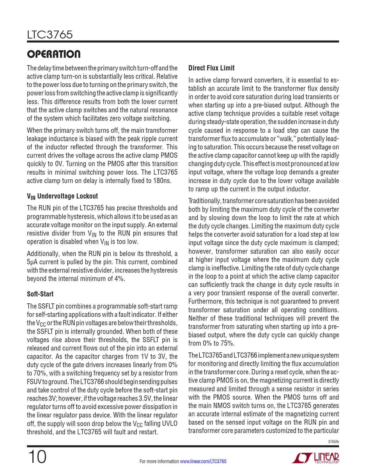 Páginas / Página24 / 10 — OPERATION. Direct Flux Limit. VIN Undervoltage Lockout. Soft-Start