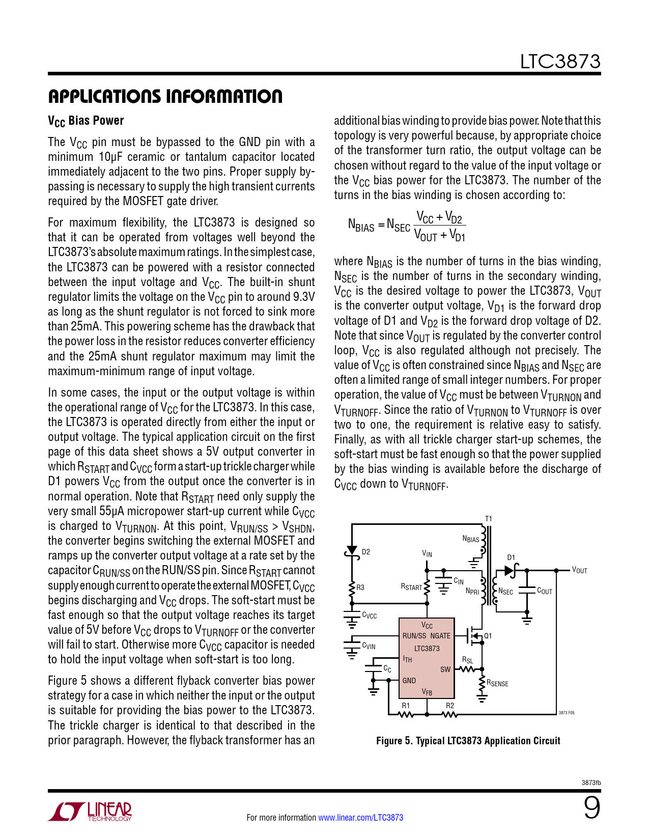 Páginas / Página18 / 9 — APPLICATIONS INFORMATION VCC Bias Power. Figure 5. Typical LTC3873 …