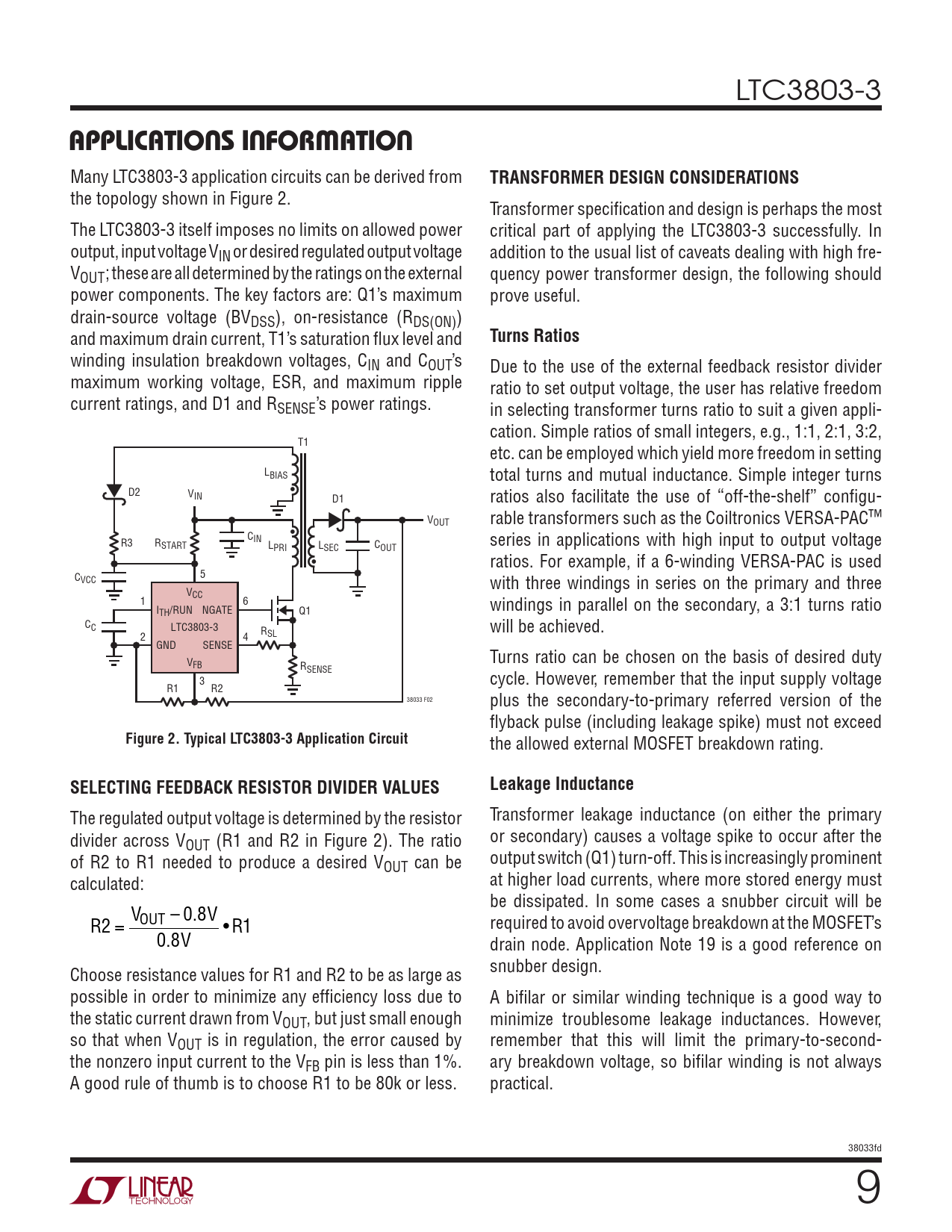 APPLICATIONS INFORMATION TRANSFORMER DESIGN CONSIDERATIONS Turns Ratios Figure 2 Typical LTC3803-3 Application Circuit