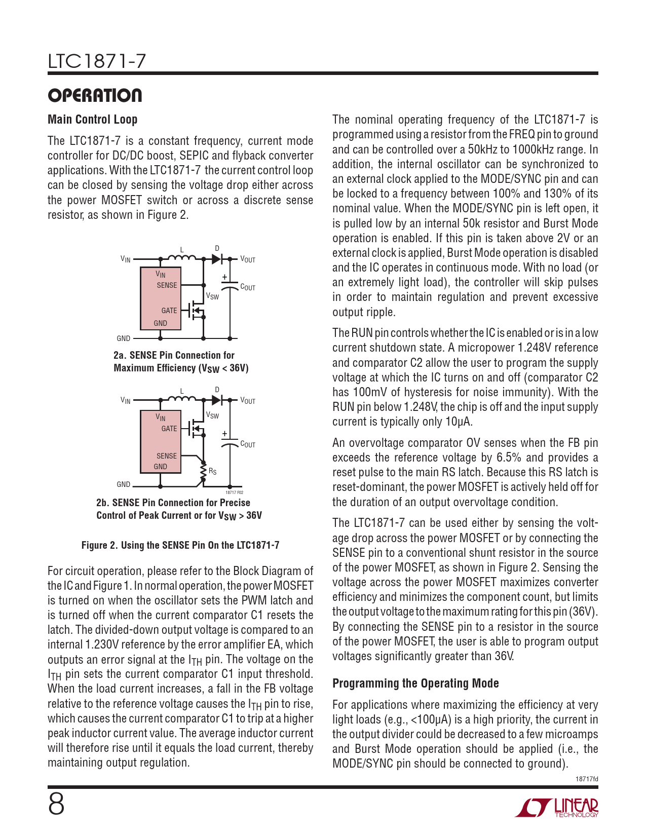 The LTC1871-7 can be used either by sensing the volt- age drop across the power MOSFET or by connecting the