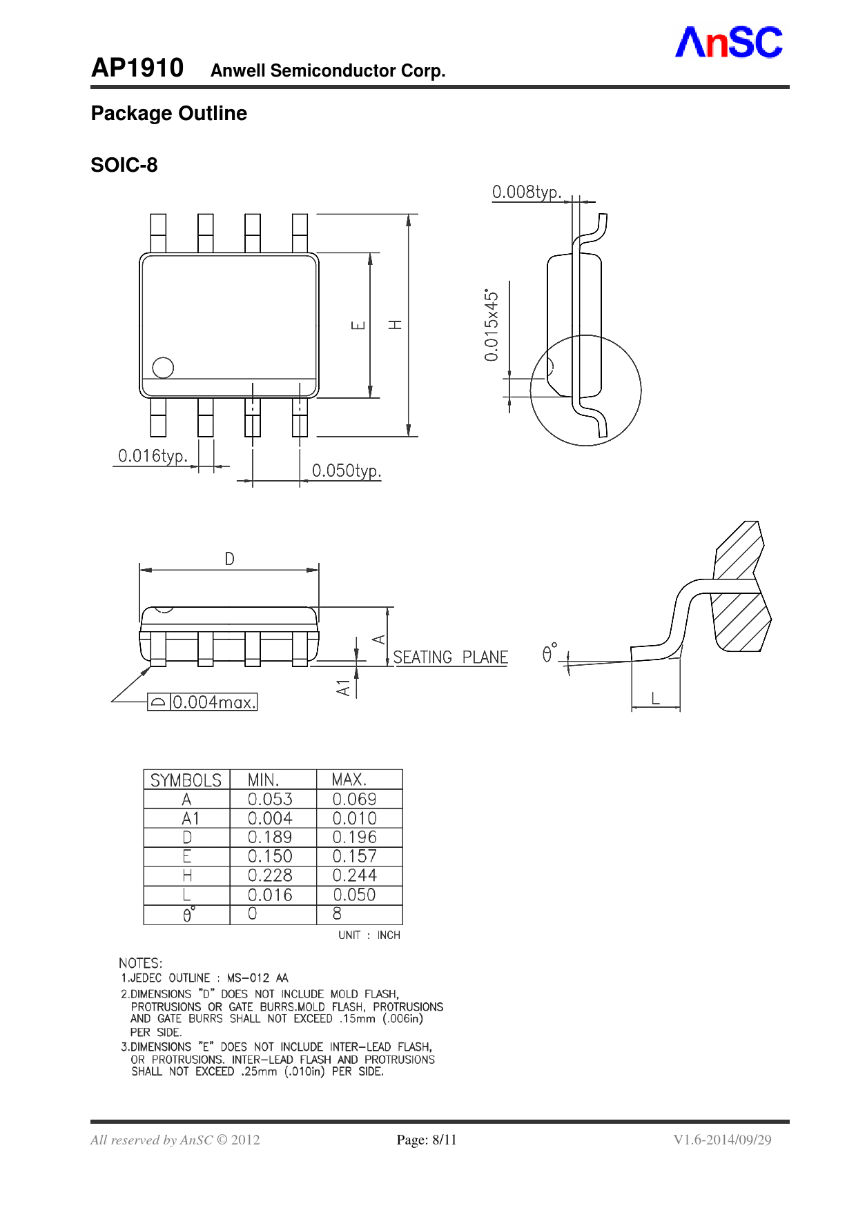 AP1910 Anwell Semiconductor Corp. Package Outline SOIC-8