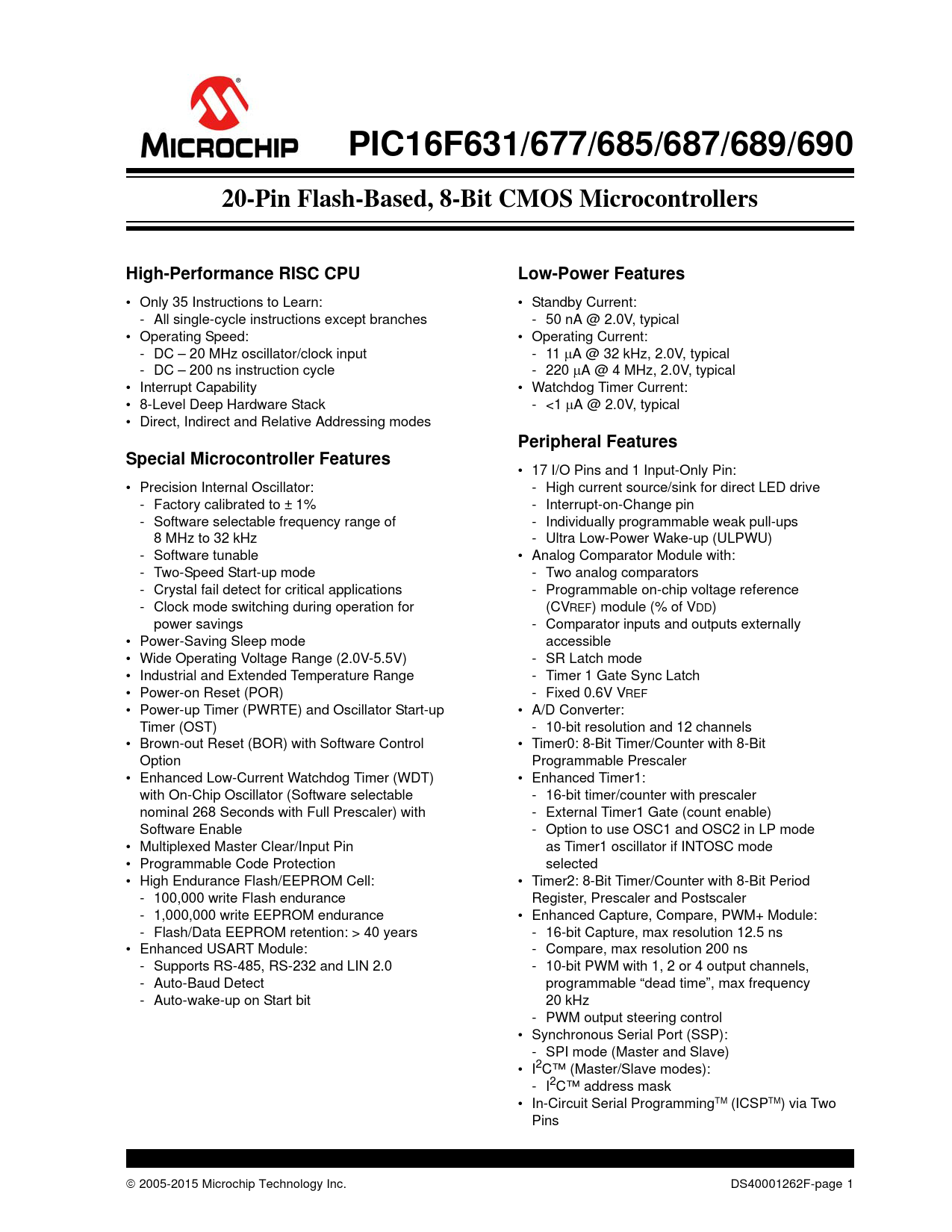 Datasheet PIC16F631, PIC16F677, PIC16F685, PIC16F687, PIC16F689, PIC16F690 (Microchip)