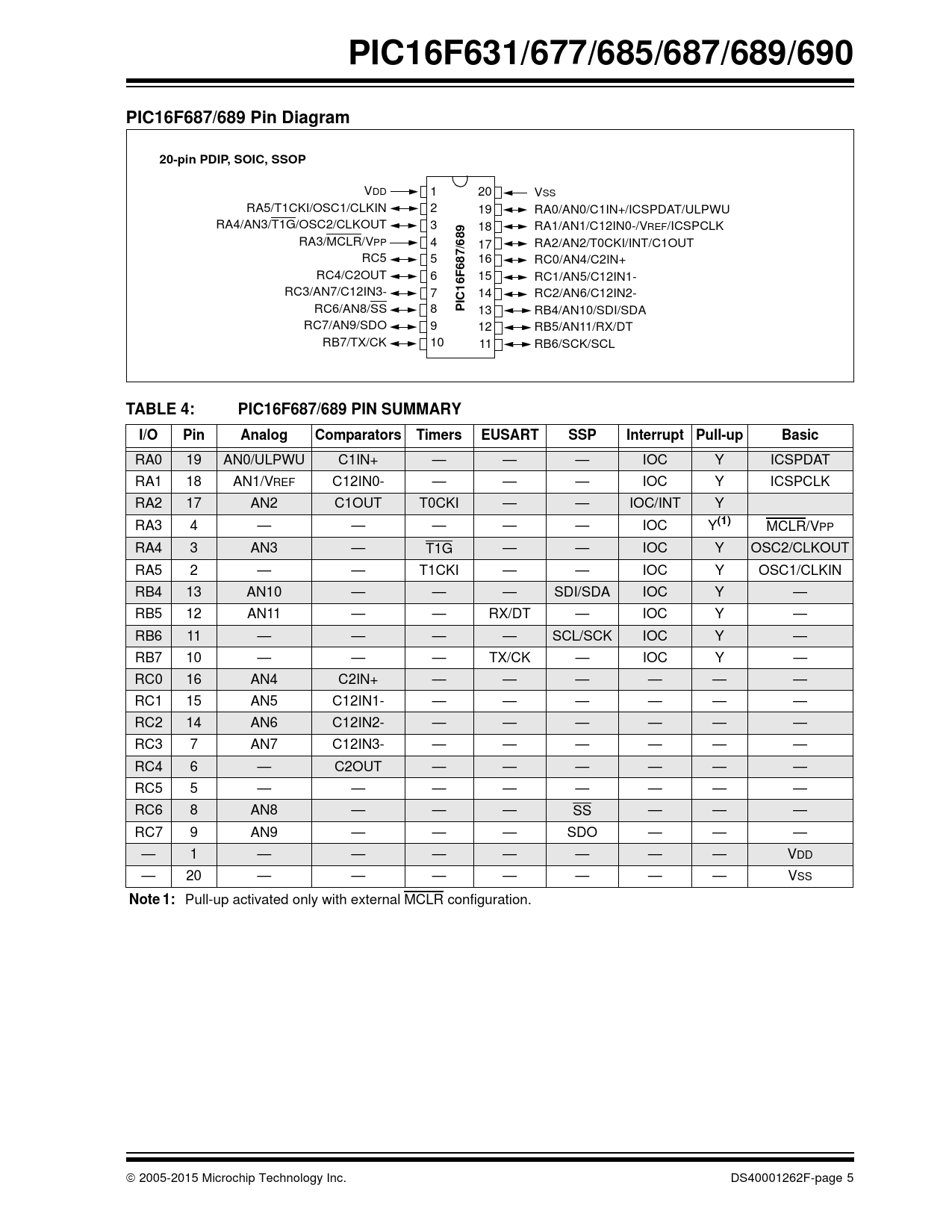 Datasheet PIC16F631, PIC16F677, PIC16F685, PIC16F687, PIC16F689, PIC16F690 (Microchip) - 5