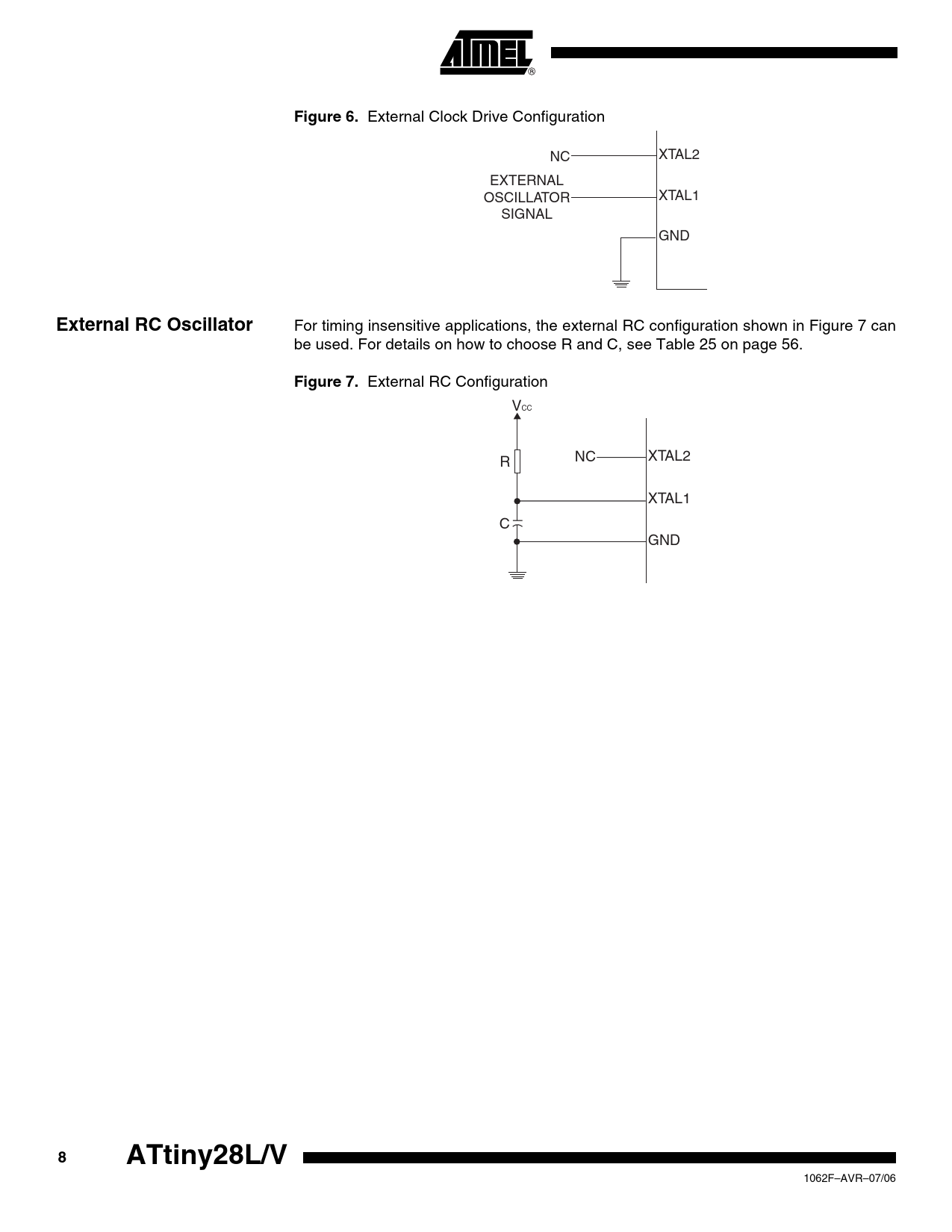 Figure 6 External RC Oscillator Figure 7 ATtiny28L/V