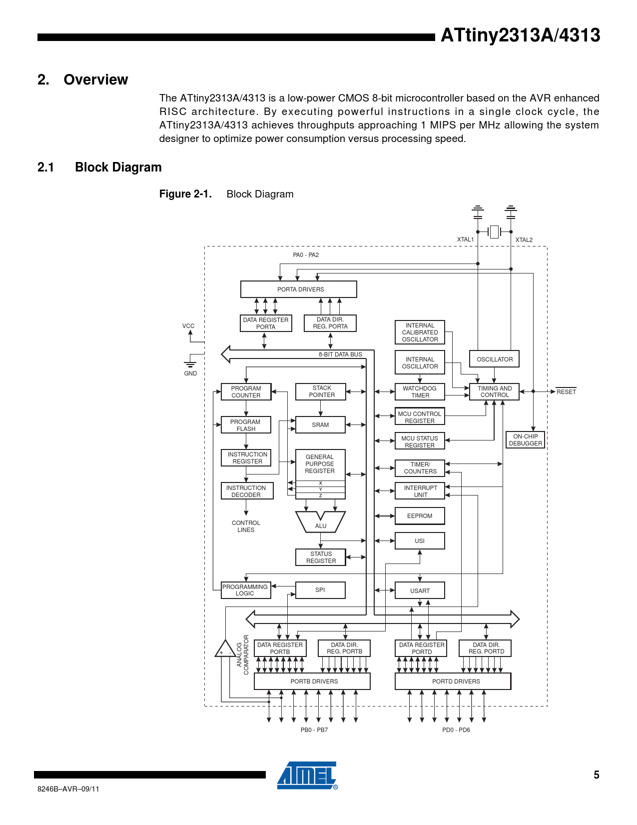 Páginas / Página274 / 5 — ATtiny2313A/4313. Overview. 2.1. Block Diagram. Figure 2-1