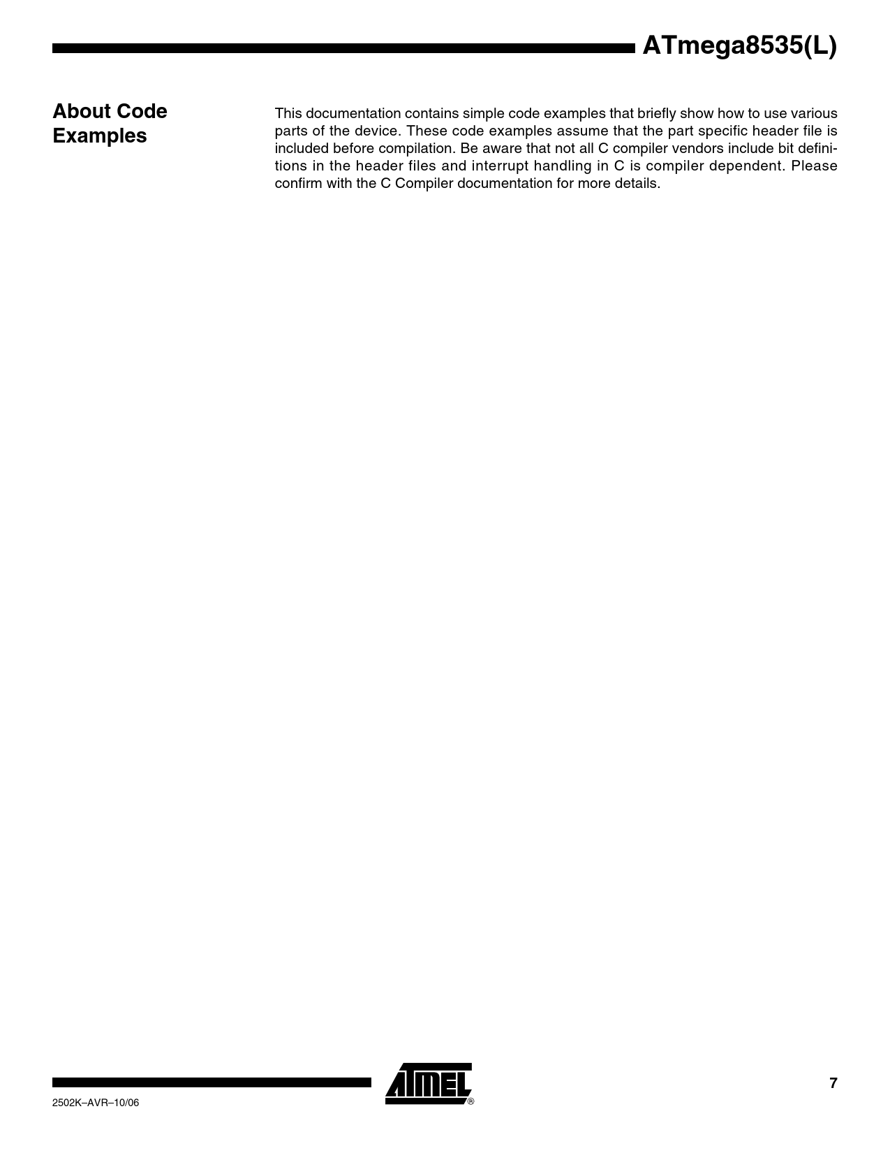 Páginas / Página321 / 7 — ATmega8535(L). About Code. Examples