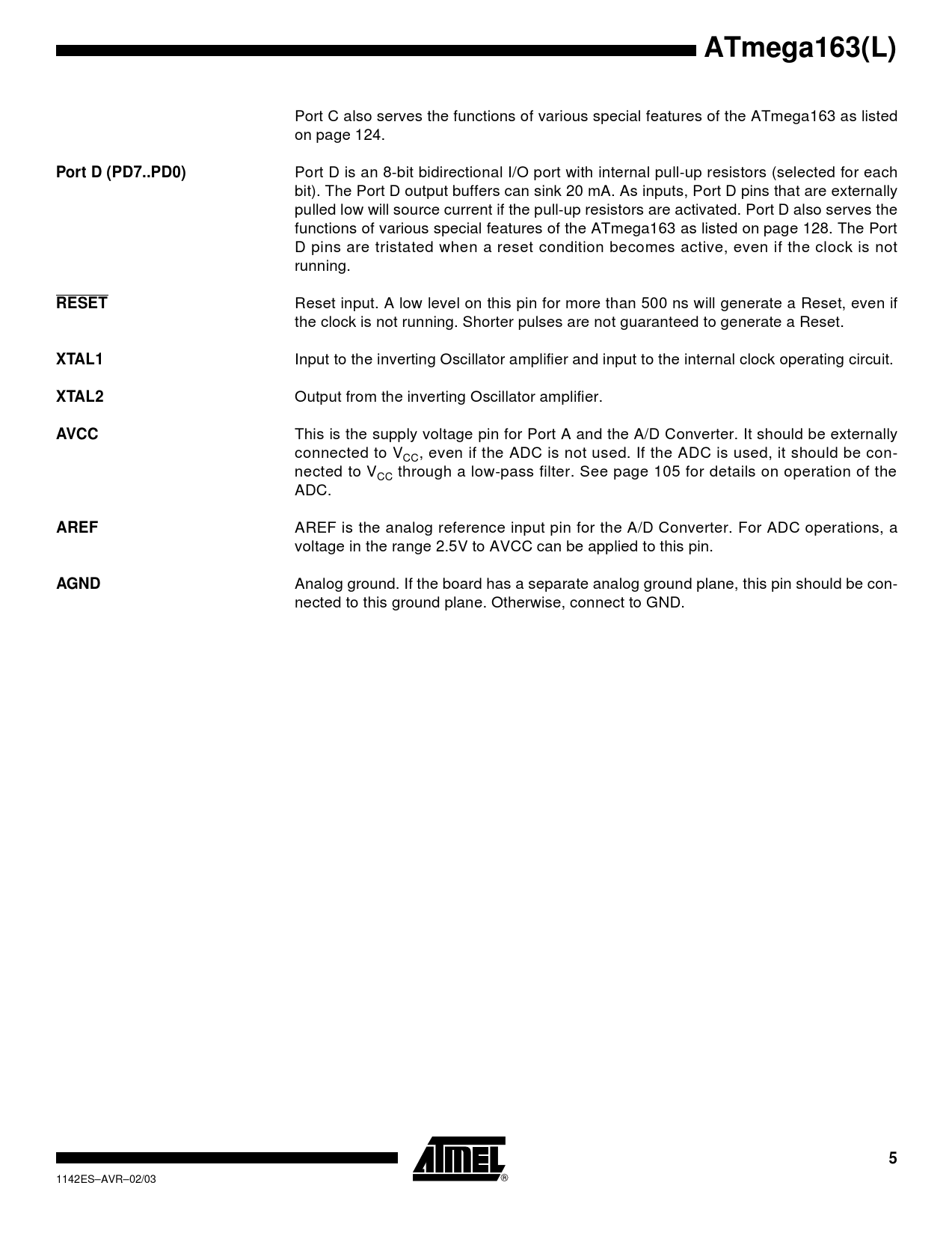 Datasheet ATmega163, ATmega163L - Summary (Atmel) - 5