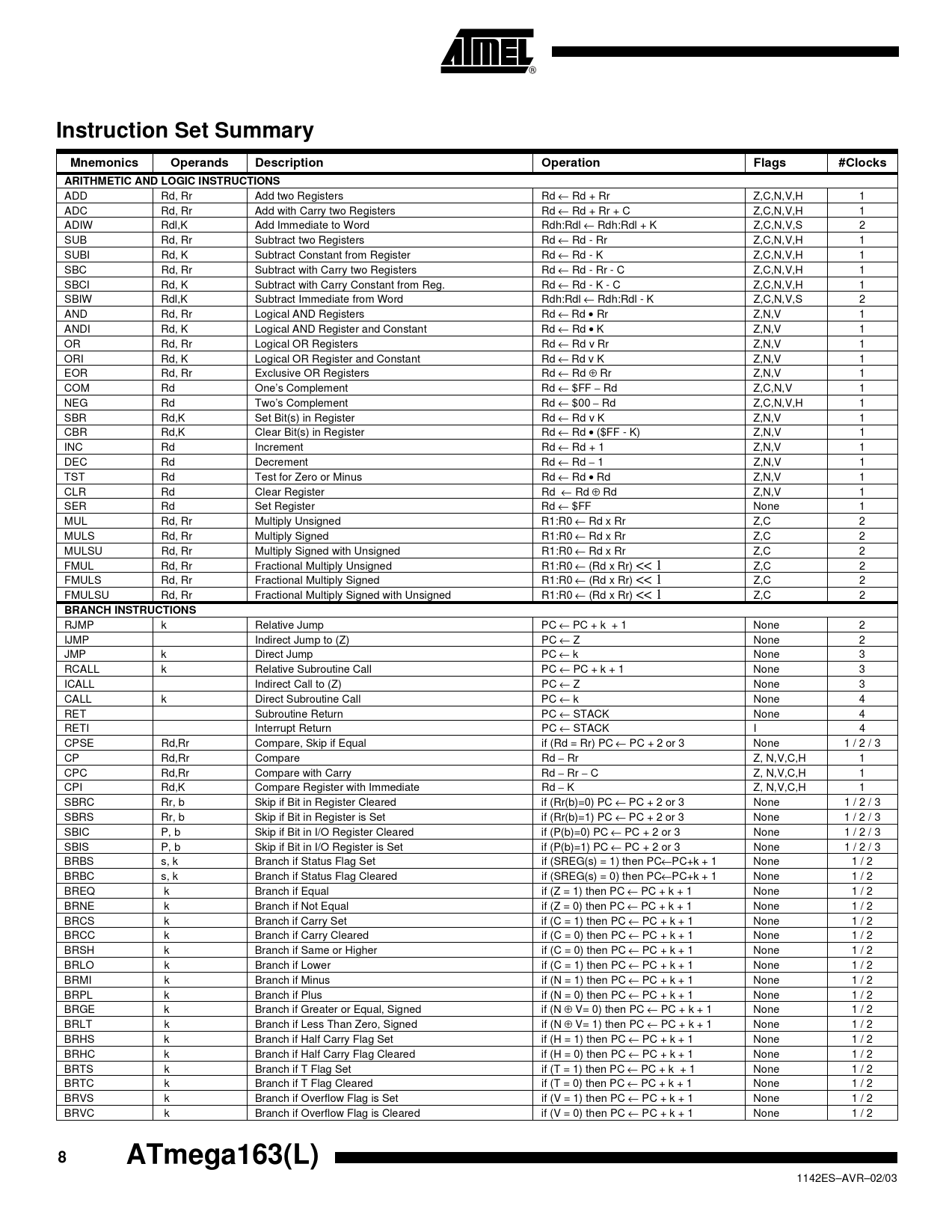 Datasheet ATmega163, ATmega163L - Summary (Atmel) - 8