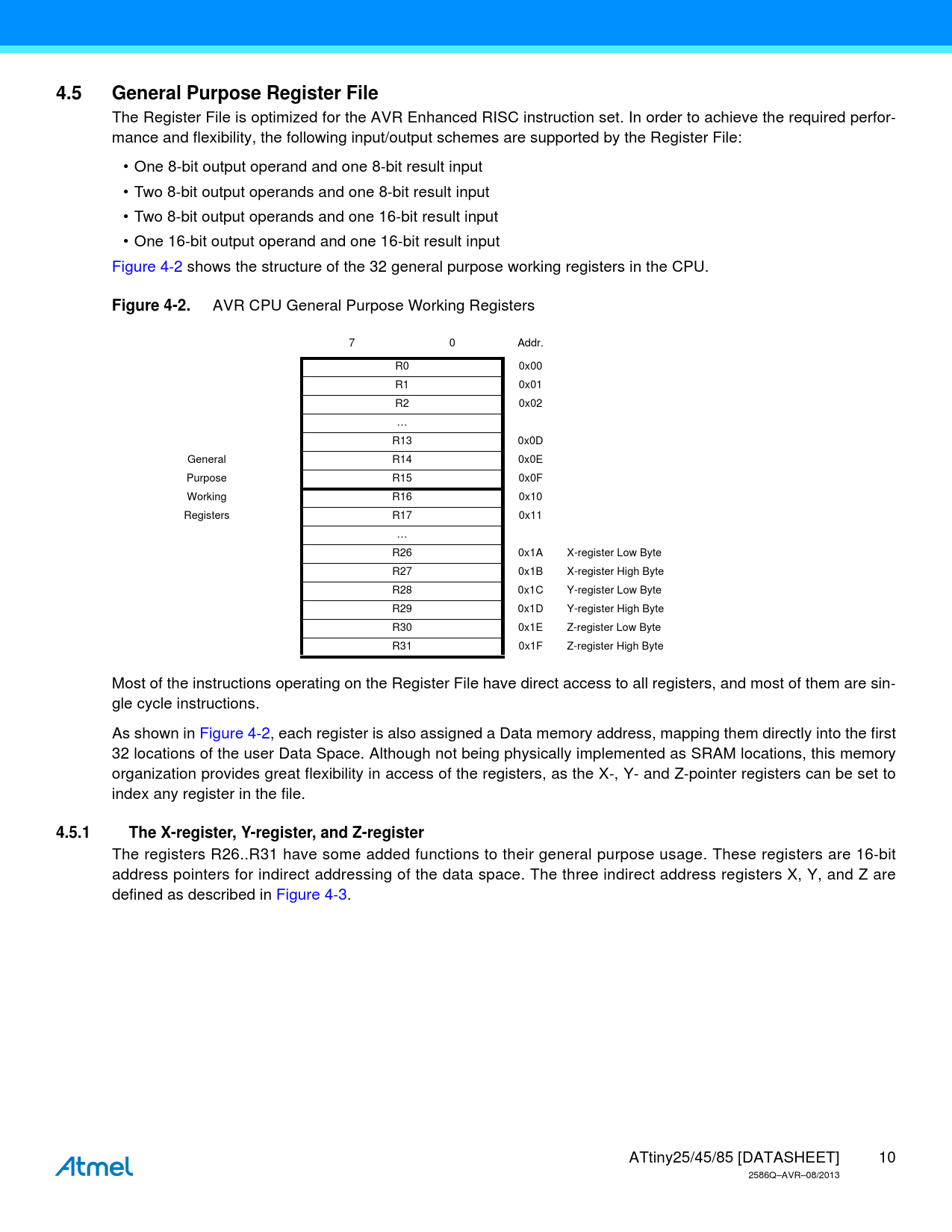 Páginas / Página234 / 10 — 4.5. General Purpose Register File. Figure 4-2. 4.5.1. The X-register, …