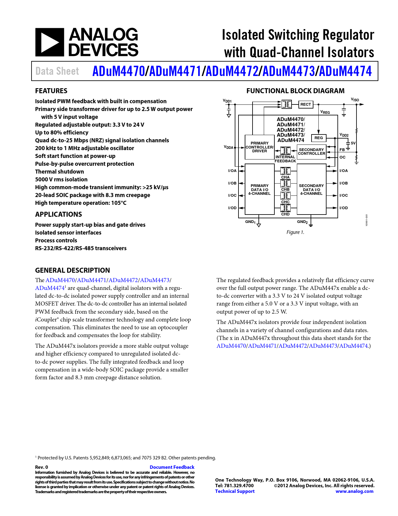 Isolated Switching Regulator. with Quad-Channel Isolators. Data Sheet. ADuM4470/. ADuM4471/. ADuM4472/. ADuM4473/. ADuM4474. FEATURES