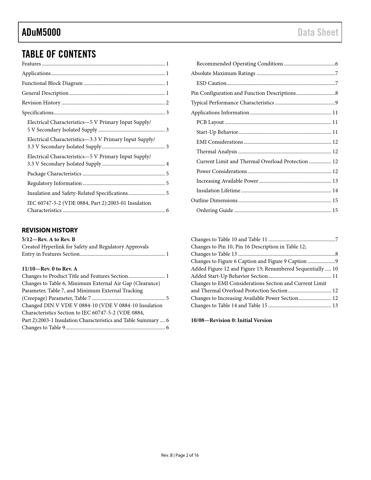 ADuM5000. Data Sheet. TABLE OF CONTENTS. REVISION HISTORY 5/12—Rev. A to Rev. B. 11/10—Rev. 0 to Rev. A