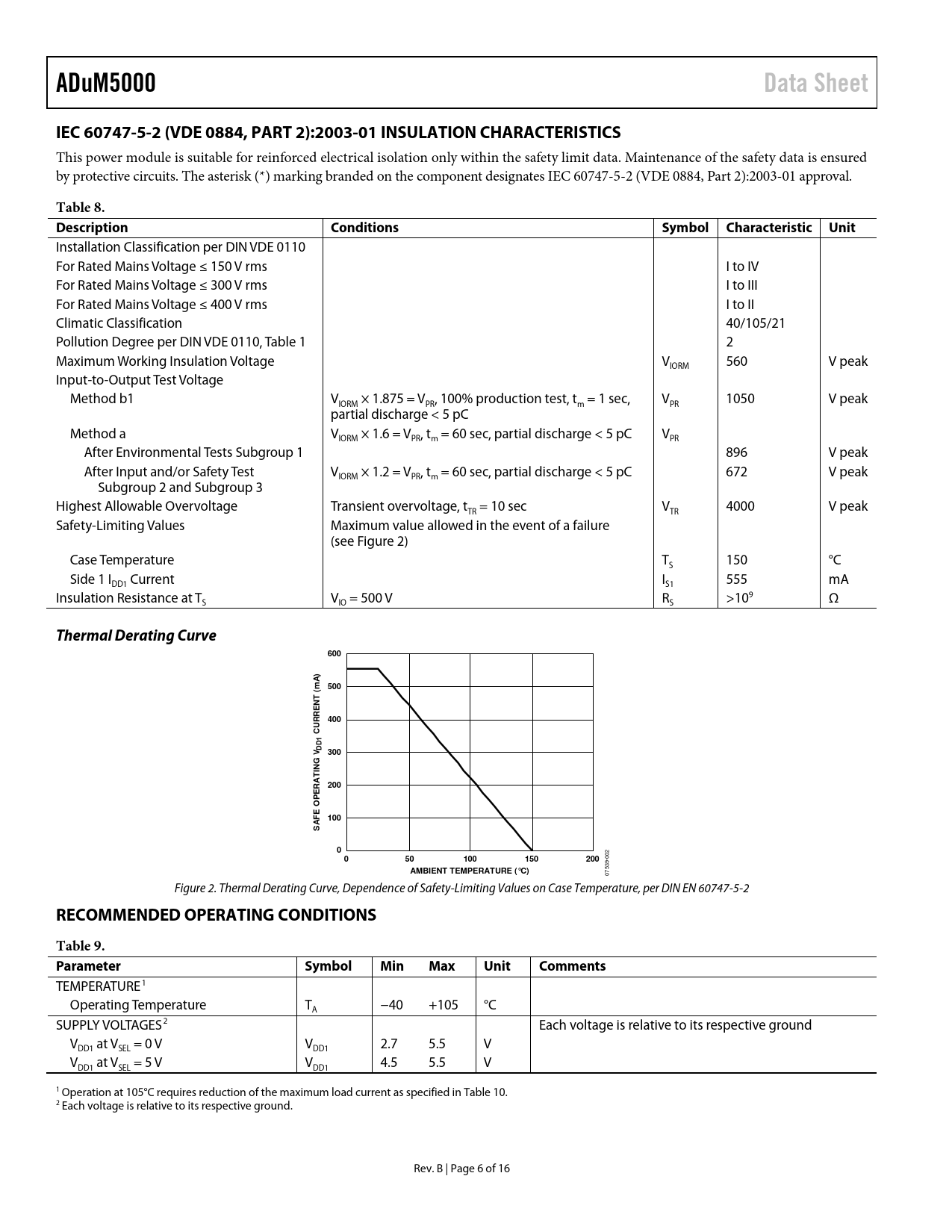 Páginas / Página16 / 6 — ADuM5000. Data Sheet. IEC 60747-5-2 (VDE 0884, PART 2):2003-01 INSULATION …