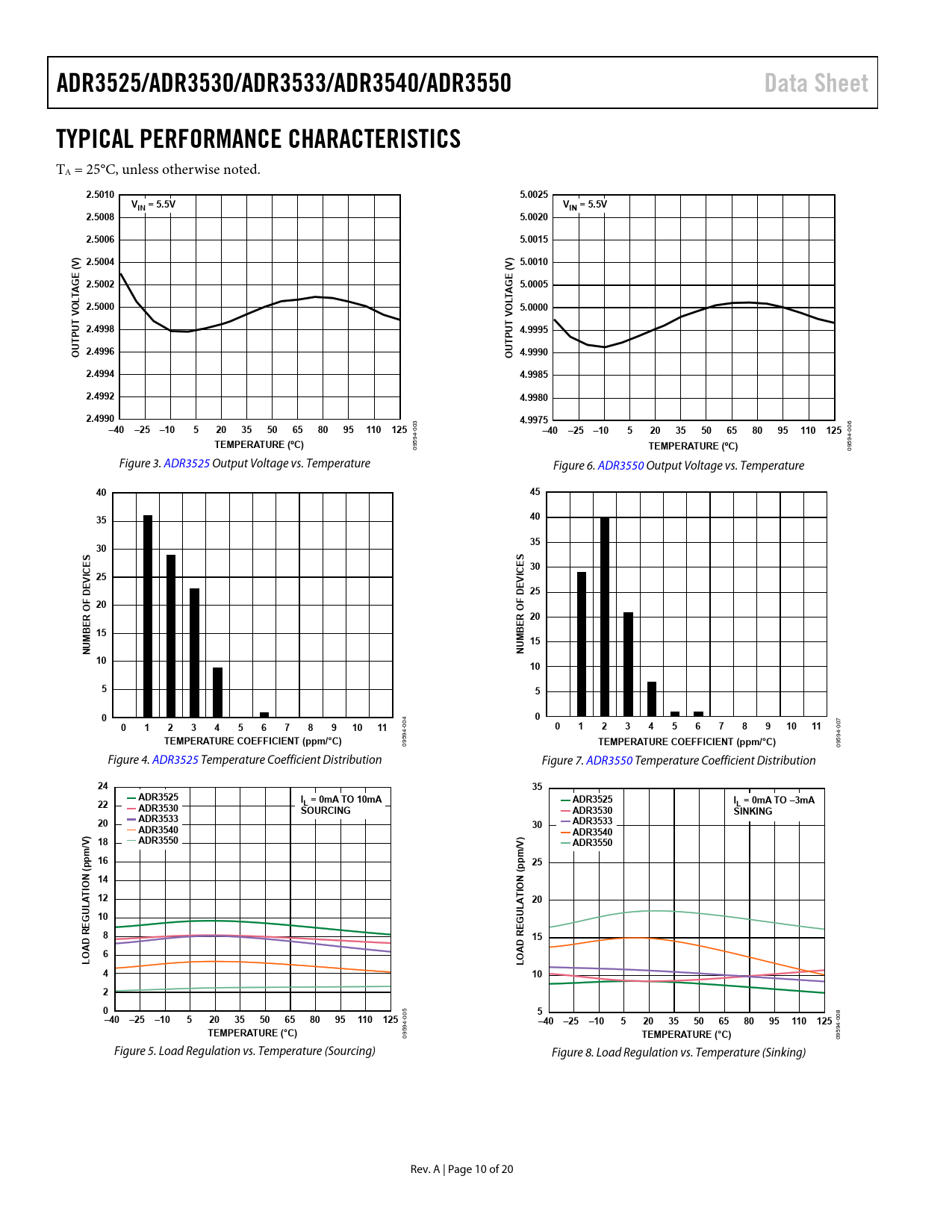 | Páginas / Página | 20 / 10 — ADR3525/ADR3530/ADR3533/ADR3540/ADR3550. Data Sheet. TYPICAL PERFORMANCE … |