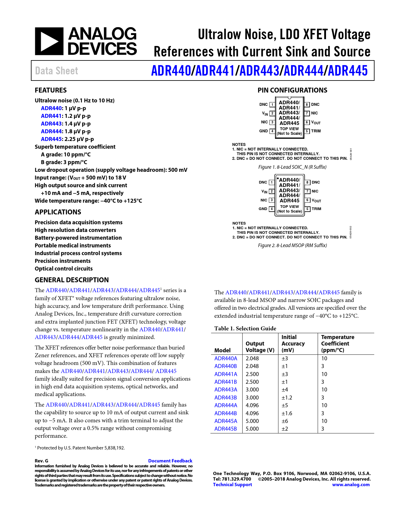 Ultralow Noise, LDO XFET Voltage. References with Current Sink and Source. Data Sheet. ADR440. /ADR441/. ADR443. /ADR444/. ADR445