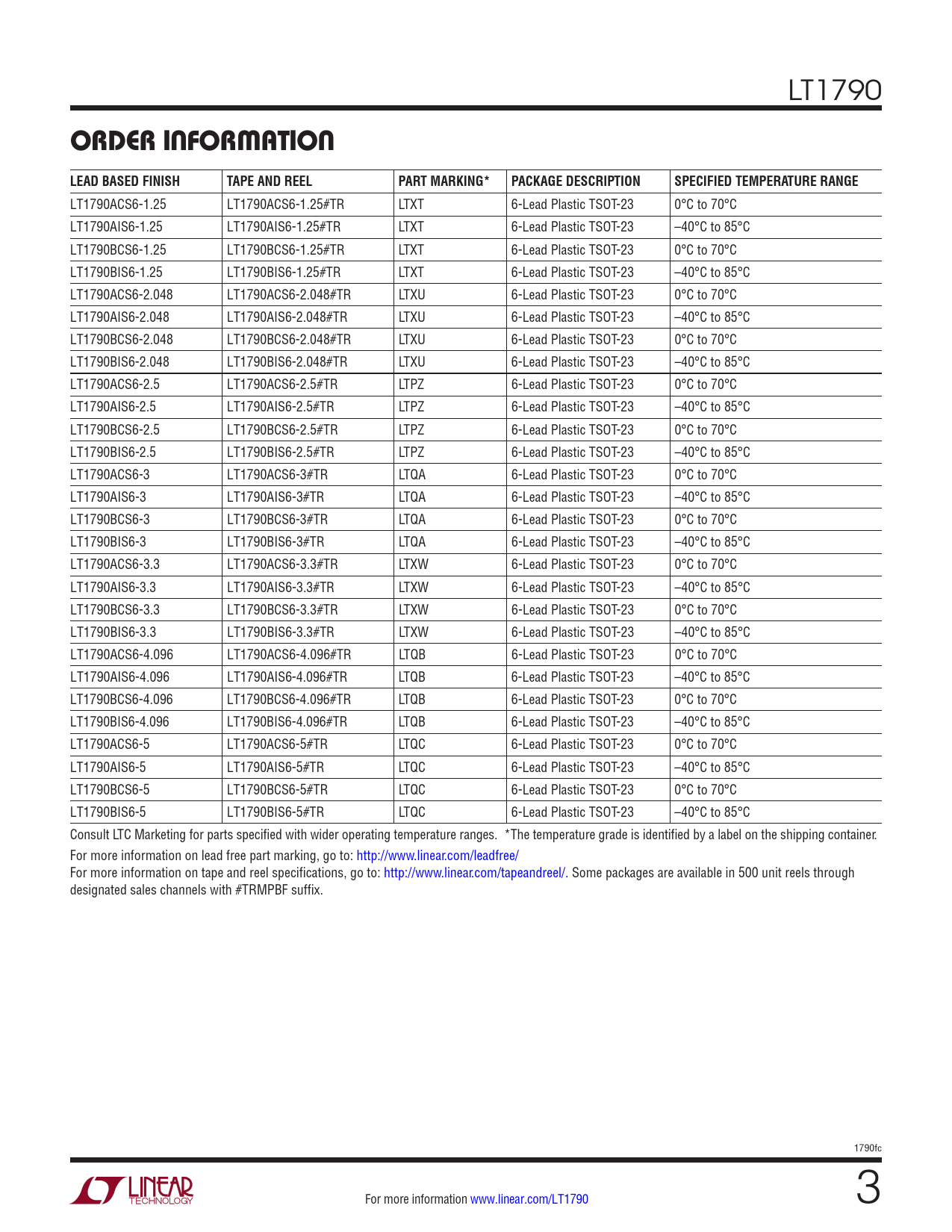 Datasheet LT1790 (Analog Devices) - 3