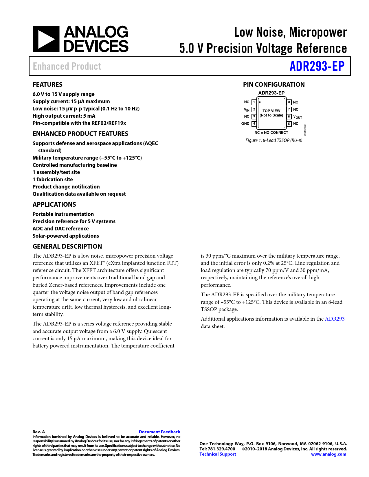 Low Noise, Micropower. 5.0 V Precision Voltage Reference. Enhanced Product. ADR293-EP. FEATURES. PIN CONFIGURATION