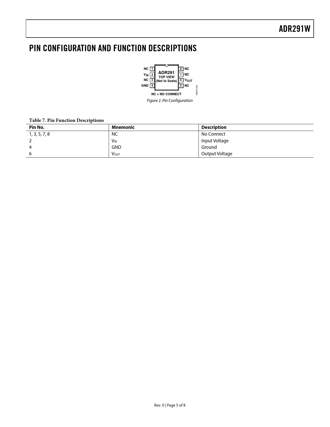 ADR291W. PIN CONFIGURATION AND FUNCTION DESCRIPTIONS. ADR291. VIN 2. TOP VIEW. (Not to Scale). OUT. GND. NC = NO CONNECT