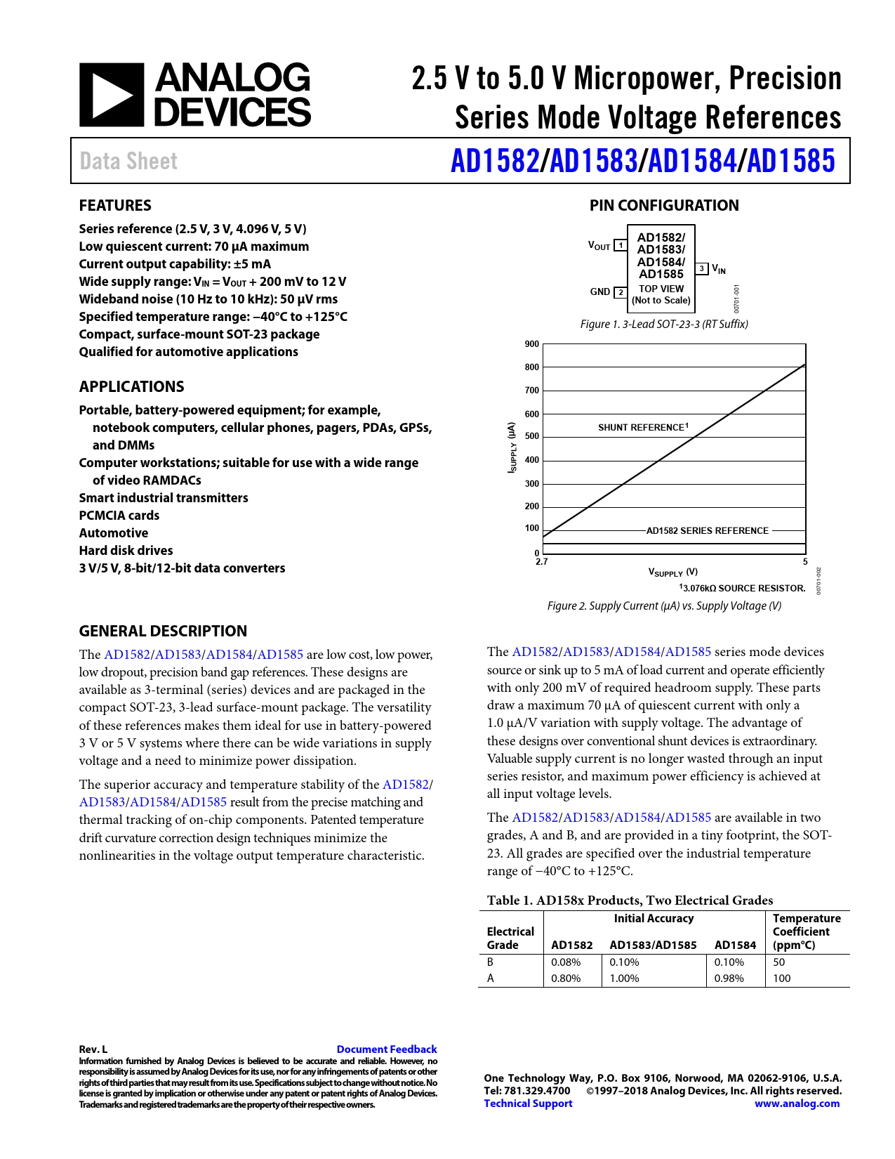 2.5 V to 5.0 V Micropower, Precision. Series Mode Voltage References. Data Sheet. AD1582/. AD1583/. AD1584/. AD1585. FEATURES
