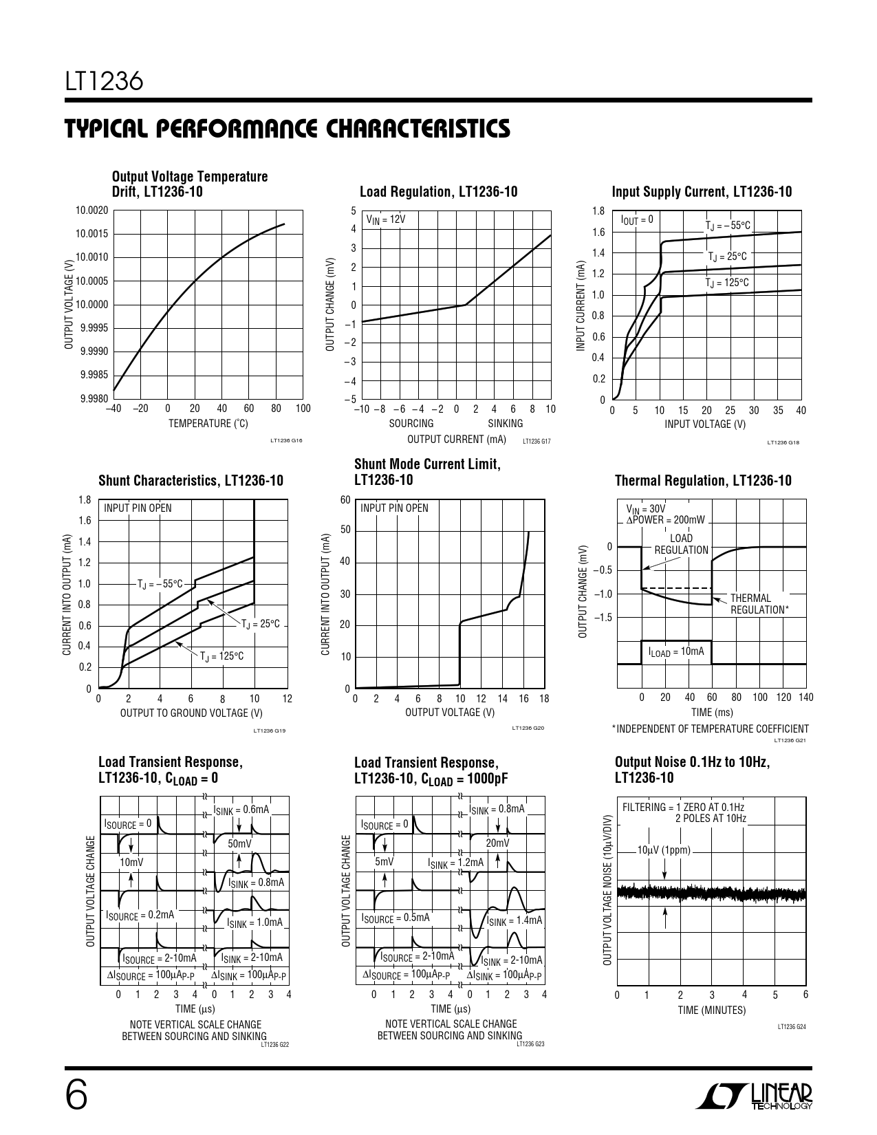 TYPICAL PERFOR A CE CHAR C. A TERISTICS. Output Voltage Temperature Drift, LT1236-10. Load Regulation, LT1236-10