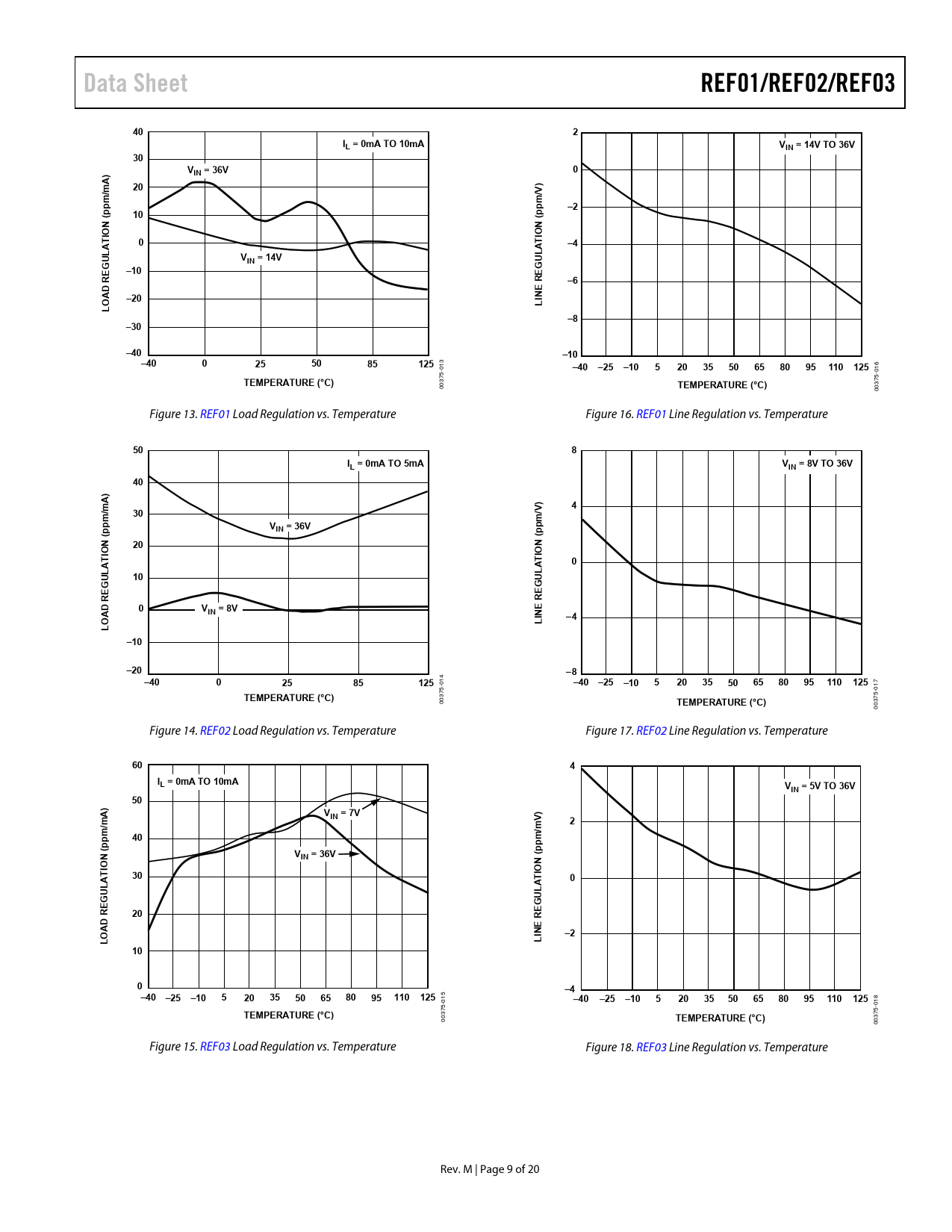 Data Sheet. REF01/REF02/REF03. IL = 0mA TO 10mA. VIN = 14V TO 36V. VIN = 36V. m p. N IO. ION. VIN = 14V. –10. AD RE. INE. –20. –30. –40. 125