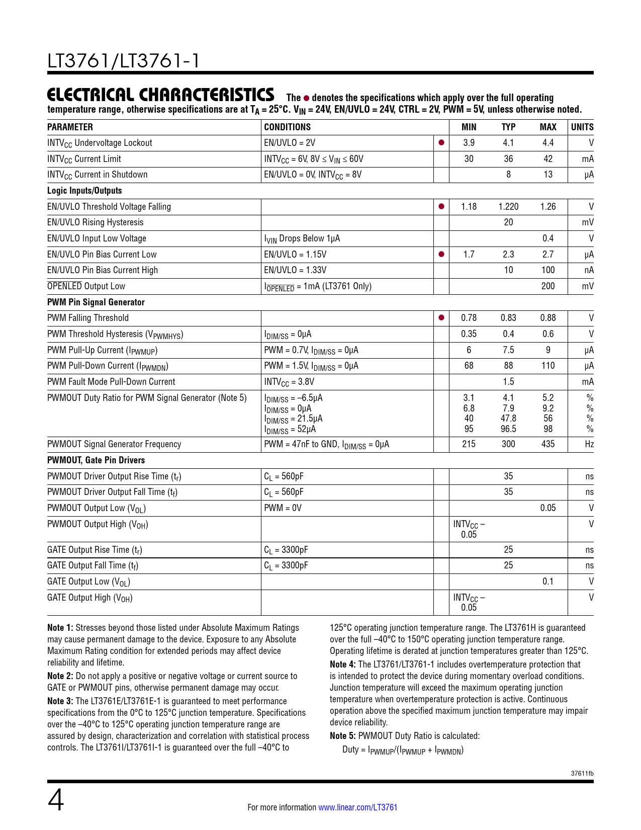 Datasheet LT3761, LT3761-1 (Analog Devices) - 4