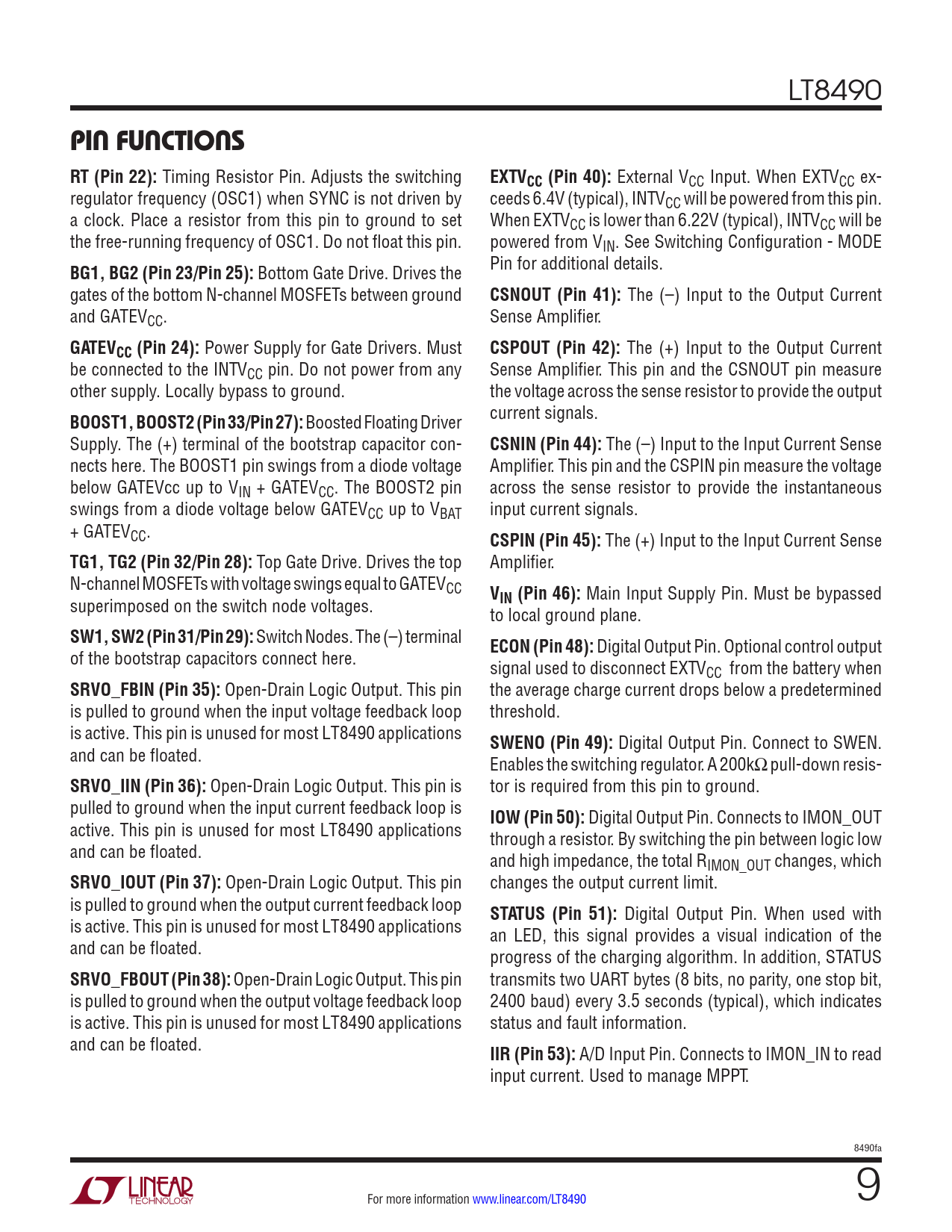 pin FuncTions RT (Pin 22):. EXTVCC (Pin 40):. BG1, BG2 (Pin 23/Pin 25):. CSNOUT (Pin 41):. GATEVCC (Pin 24):. CSPOUT (Pin 42):