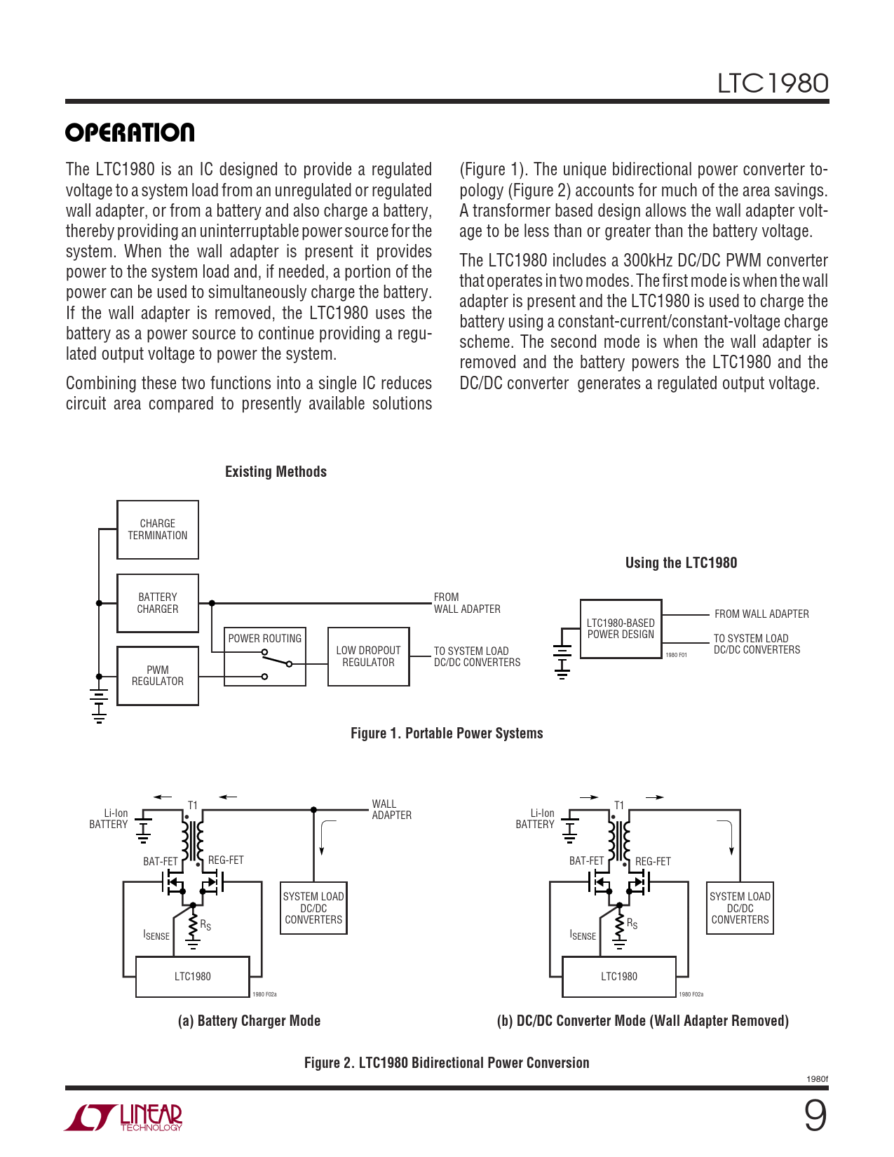 OPERATIO. Existing Methods. Using the LTC1980. Figure 1. Portable Power Systems. (a) Battery Charger Mode