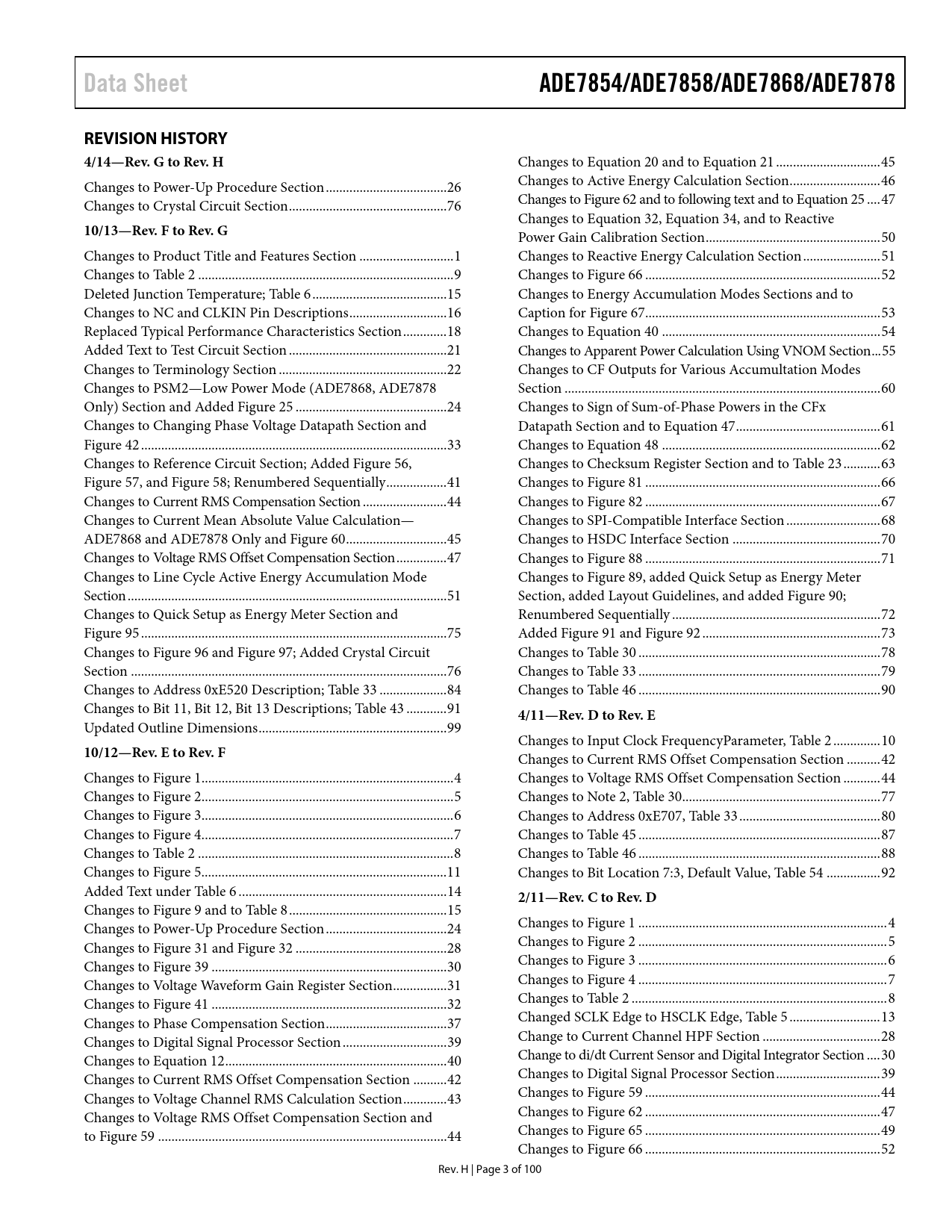 Data Sheet ADE7854/ADE7858/ADE7868/ADE7878 REVISION HISTORY 4/14—Rev. G to Rev. H