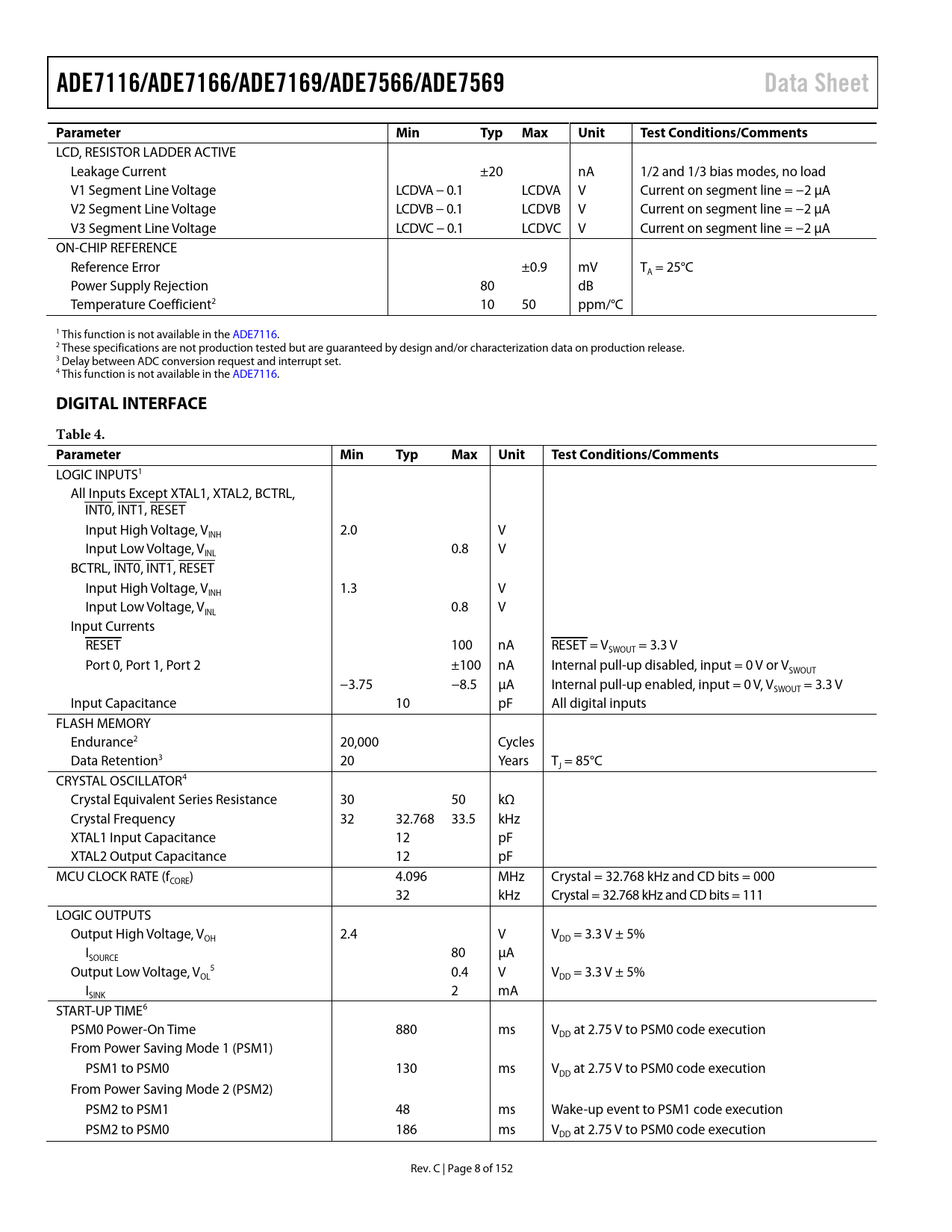 Páginas / Página152 / 8 — ADE7116/ADE7166/ADE7169/ADE7566/ADE7569. Data Sheet. Parameter. Min. Typ …