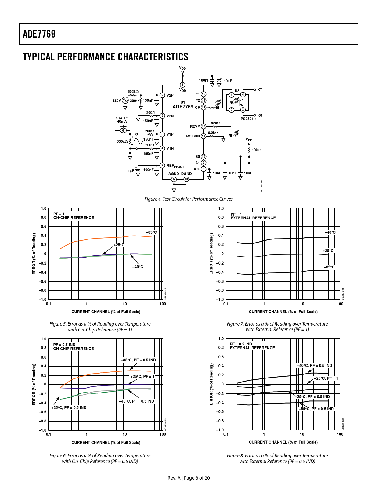 Páginas / Página20 / 8 — ADE7769. TYPICAL PERFORMANCE CHARACTERISTICS. VDD. 100nF. 602k. V2P. F1 …