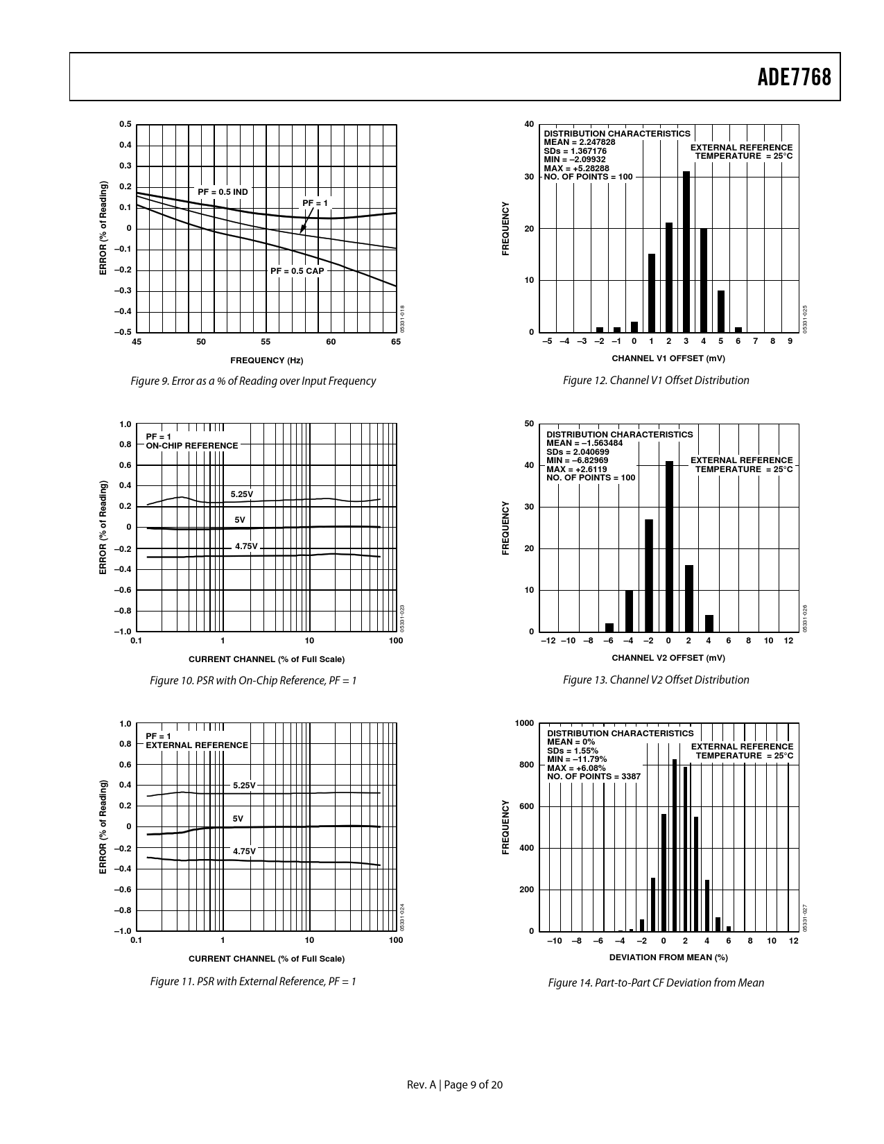 Figure 10. PSR with On-Chip Reference, PF = 1 Figure 13. Channel V2 Offset Distribution