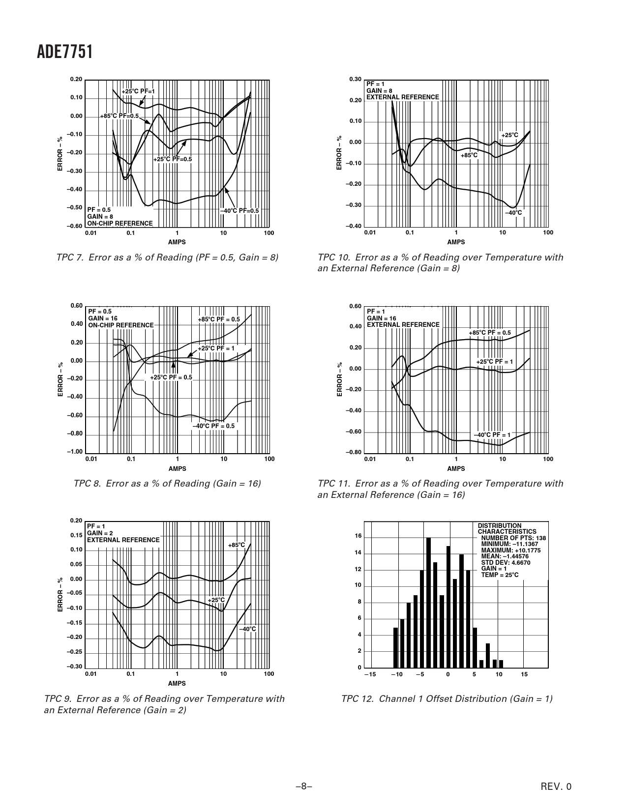 ADE7751. 0.20. 0.30 PF = 1. +25. C PF=1. GAIN = 8. 0.10. 0.20 EXTERNAL REFERENCE. 0.00. +85. C PF=0.5. –0.10. –0.20. ERROR – % –0.30. ERROR – %