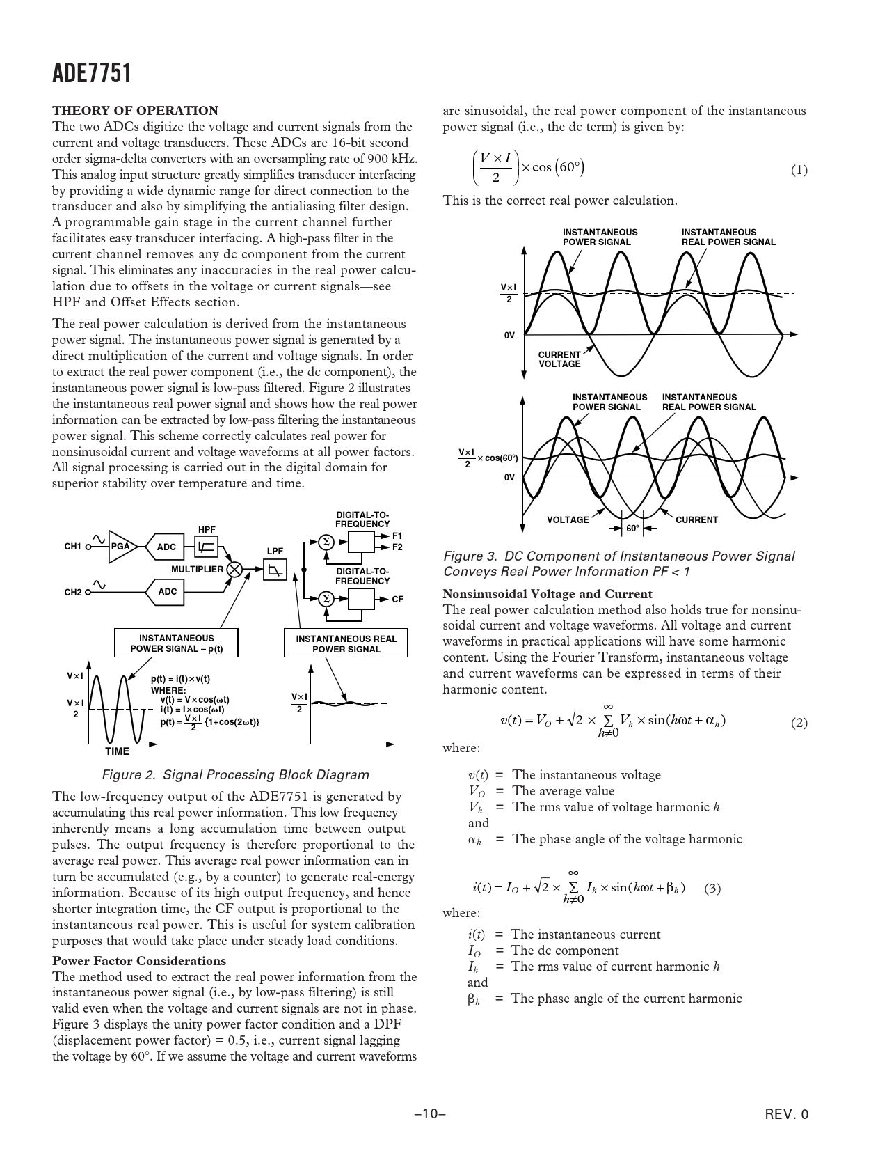 ADE7751. THEORY OF OPERATION. INSTANTANEOUS. POWER SIGNAL. REAL POWER SIGNAL. CURRENT. VOLTAGE. cos(60. DIGITAL-TO-. FREQUENCY. HPF. CH1. PGA