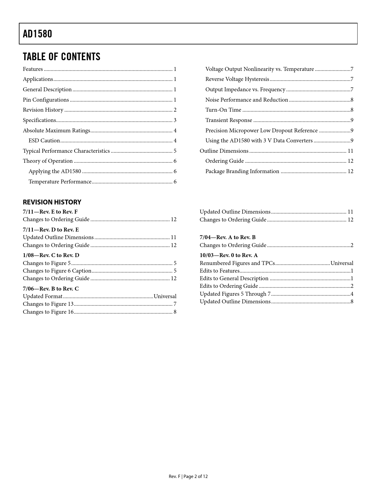 AD1580 TABLE OF CONTENTS REVISION HISTORY 7/11—Rev E to Rev F 7/11—Rev D to Rev E 7/04—Rev A to Rev B