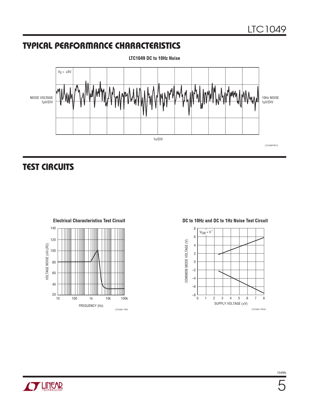 Typical perFormance characTerisTics. LTC1049 DC to 10Hz Noise. TesT circuiTs. Electrical Characteristics Test Circuit