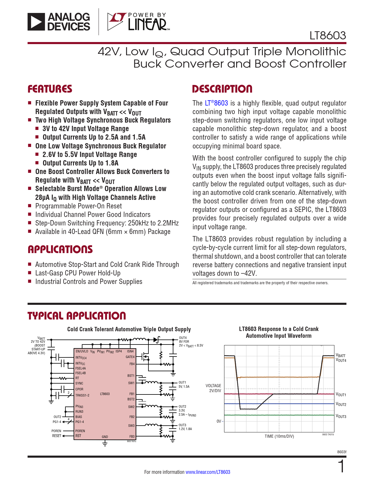 LT8603 42V, Low IQ, Quad Output Triple Monolithic Buck Converter and Boost Controller