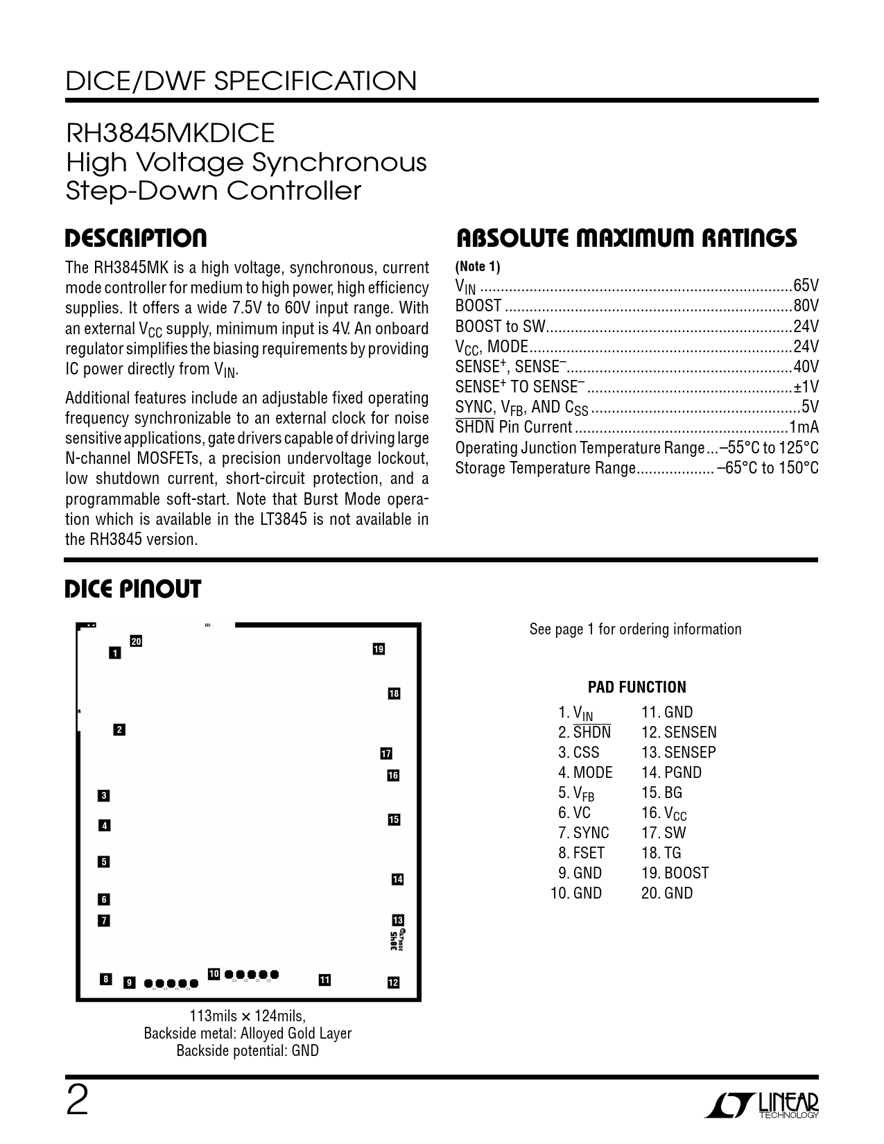 Datasheet RHK3845MKDICE (Analog Devices) - 2