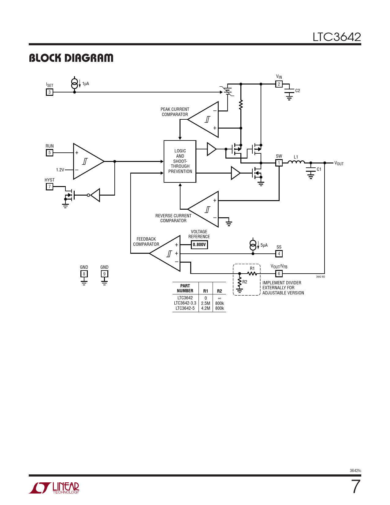 5µA SS + 4 – GND GND R1 VOUT/VFB 8 9 6 3642 BD R2 IMPLEMENT DIVIDER