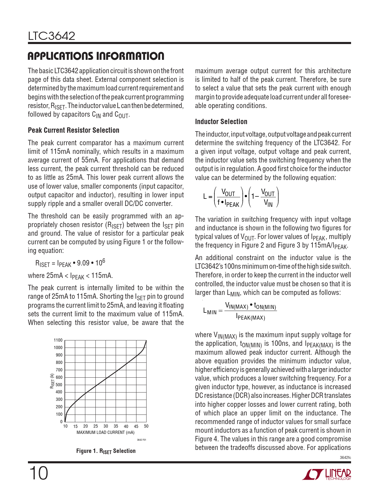 APPLICATIONS INFORMATION. Inductor Selection. Peak Current Resistor Selection. Figure 1. R. ISET Selection