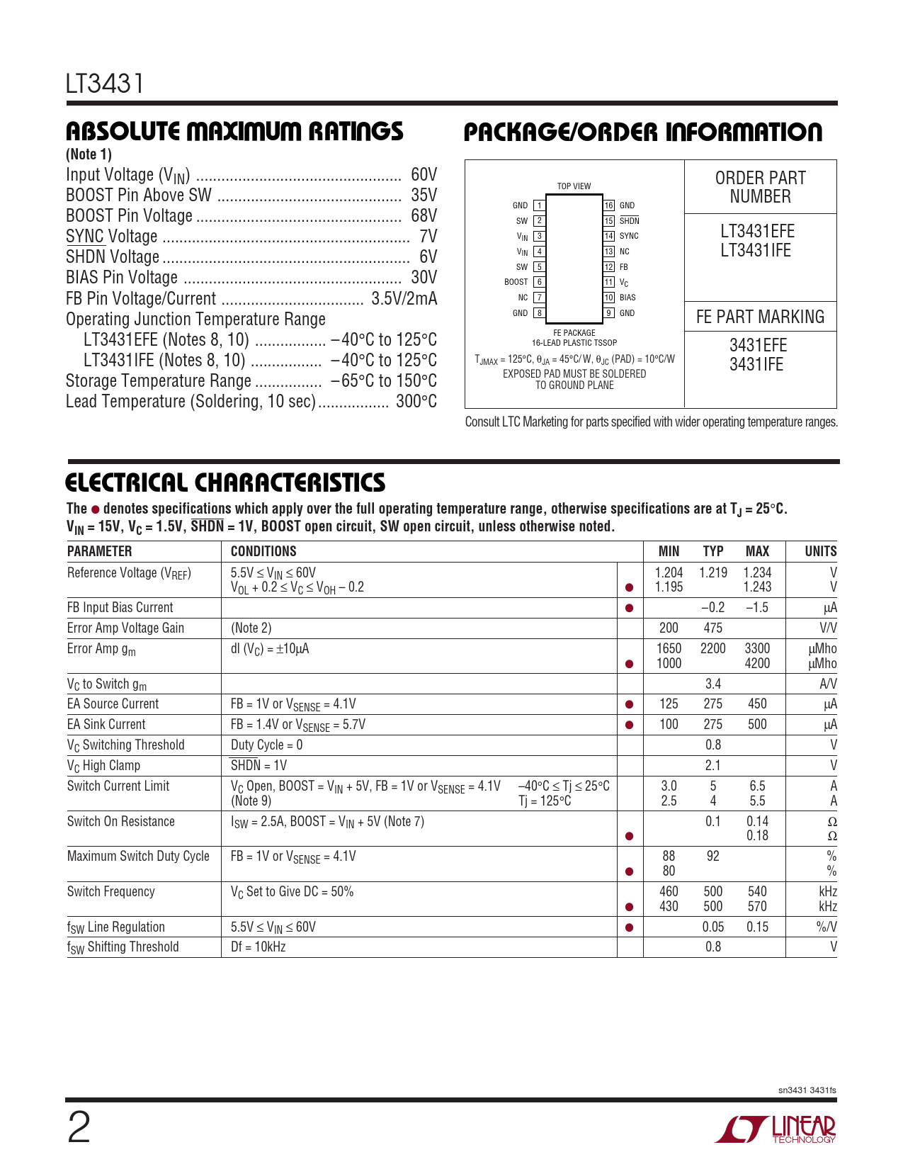 Datasheet LT3431 (Analog Devices) - 2